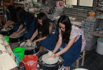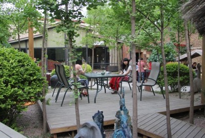 漢世?鳳凰會坐落在北京漢世陶藝館中,時至初夏,多條迷宮般的陶瓷磚墻指引您進(jìn)入別有洞天的“世外陶園”,這是考驗?zāi)腔鄣臅r刻。若是走出迷宮,穿過古樸的小木橋,踏過鋪滿陶粒的小路,眼前就會豁然開朗,里面真真一個“世外桃源”:藤蘿間掩映不住手工磚墻,連地面上也鋪裝著有趣的樹葉瓷磚,林林落落的座椅,原始的茅草屋,隨處散落的瓷器,搖曳生姿的花朵.....這一切讓人心頓時染滿綠意,從喧囂歸于平靜。在院落中央,這棟綠樹掩映中的那座玻璃房,便是我們“漢世?鳳凰會”的俱樂部。