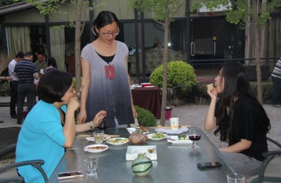 院中央的長桌上,擺著各種各樣的美食,紅酒、壽司、沙拉、點心、品種多樣的烤串,陶餐廳的大廚在旁提供著周到的服務(wù),樂莫樂兮新相知,三三兩兩地聊著天,或在小亭中,或在茅廬中,或在秋千上......把酒言歡,談意頗濃,大有相見恨晚之意,一直持續(xù)晚上九點左右才正式結(jié)束, 狂歡的時刻總是短暫的,但那份快樂的記憶永不消失。
