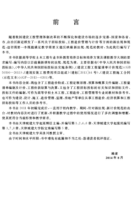 本書(shū)可作為高等學(xué)校土木工程、工程造價(jià)、工程管理等專業(yè)本科生的教材,也可作為工程造價(jià)人員及相關(guān)管理人員的培訓(xùn)教材和學(xué)習(xí)參考書(shū)。