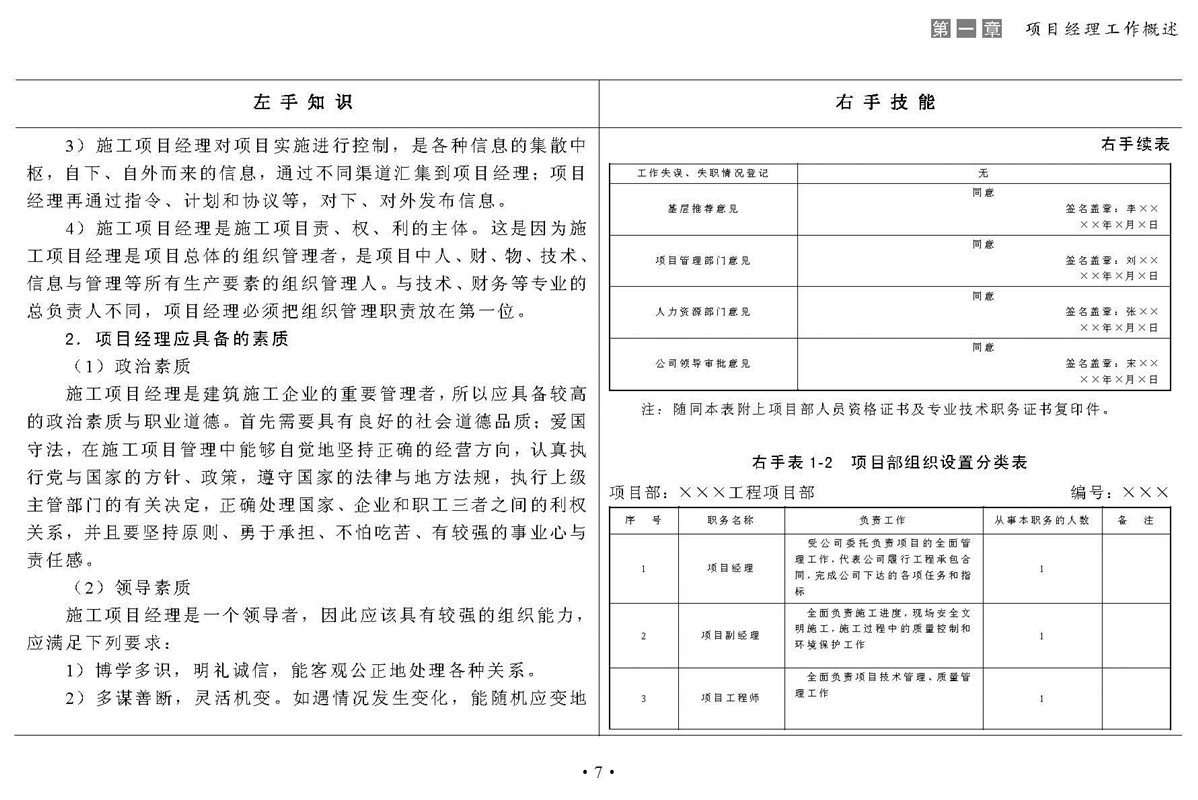 本書(shū)根據(jù)我國(guó)近幾年研究發(fā)布的新法規(guī)、新規(guī)范編寫而成,注重理論與實(shí)踐相結(jié)合,按照實(shí)際工程項(xiàng)目管理的工作流程展開(kāi),以“知識(shí)”+“技能”的形式,既重視對(duì)基礎(chǔ)理論知識(shí)的闡述,又就建筑項(xiàng)目經(jīng)理工作表格填寫列舉了大量范例,內(nèi)容豐富、通俗易懂。全書(shū)內(nèi)容包括項(xiàng)目經(jīng)理工作概述、工程項(xiàng)目成本管理、工程項(xiàng)目施工進(jìn)度管理、工程項(xiàng)目生產(chǎn)要素管理、工程項(xiàng)目質(zhì)量管理、工程項(xiàng)目安全管理、工程項(xiàng)目招標(biāo)投標(biāo)與合同管理、工程項(xiàng)目綜合管理以及工程項(xiàng)目收尾管理?! ?br />