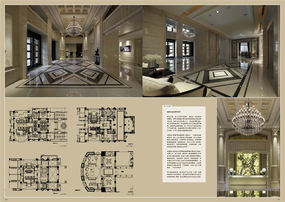 豪宅代表一定的尊貴身份,豪宅的公共區(qū)域可以說是一個(gè)半私密的活動(dòng)空間。精英階層文化動(dòng)態(tài)對(duì)公共空間設(shè)計(jì)會(huì)產(chǎn)生一定的影響。首先是尊貴。公共空間也是一個(gè)高貴的地方,代表出入使用者一定的檔次,就像歐美百年歷史的俱樂部一樣,有會(huì)員限制規(guī)定。會(huì)員有一定的社會(huì)地位,是身份的象征。豪宅也是相同的精英階層聚集之處,公共空間設(shè)計(jì)要體現(xiàn)優(yōu)越感,講究用料、選材,以奢華的空間氛圍彰顯尊貴的社會(huì)地位。再者是獨(dú)特。公共空間設(shè)計(jì)應(yīng)該悉心剪裁,有個(gè)性、特色,給人留下深刻的印象。獨(dú)特的設(shè)計(jì)能夠產(chǎn)生獨(dú)特的氣質(zhì),這種與眾不同、唯我獨(dú)尊的感覺,往往能夠增加項(xiàng)目的價(jià)值。獨(dú)特的設(shè)計(jì)可以從多個(gè)方面來推敲:例如,有針對(duì)性地剪裁空間,利用獨(dú)特的空間條件及其他環(huán)境要素,也可取材于歷史、文化和藝術(shù)背景,同時(shí)考慮空間功能定位的需求;設(shè)計(jì)師可將創(chuàng)作元素表現(xiàn)于建筑造型、燈具及家具造型、色彩及材料利用、裝修節(jié)點(diǎn)、擺設(shè)及掛畫等,以此塑造獨(dú)特的空間個(gè)性。