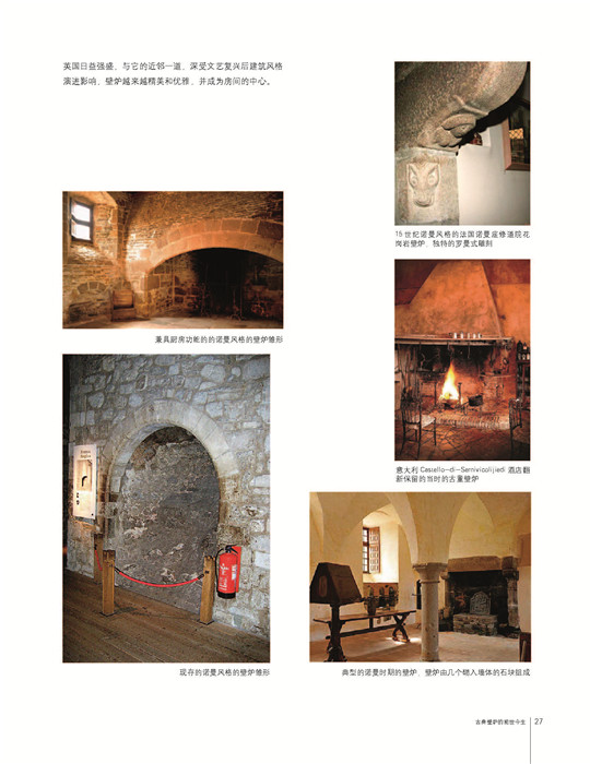 其一,盡可能地對龐雜的壁爐歷史和文化做整體、嚴(yán)謹(jǐn)?shù)氖崂砗腿∩幔攸c從壁爐承載的文化價值、精神意義及美學(xué)價值著手,以期能夠幫助讀者整體地理解壁爐。