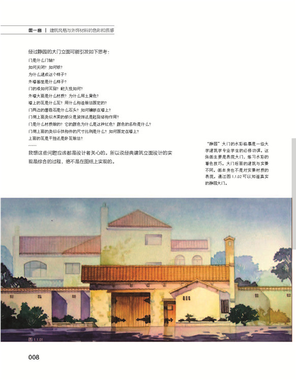 目前建筑市場(chǎng)進(jìn)入下行趨勢(shì),建設(shè)單位及設(shè)計(jì)單位對(duì)材料的成本開始重點(diǎn)關(guān)注。建筑外立面裝飾材料品種繁多,但市面上還沒有系統(tǒng)介紹外立面裝飾材料的圖書?,F(xiàn)今設(shè)計(jì)者只有通過材料廠商的宣傳圖冊(cè)和網(wǎng)絡(luò)上支離破碎的信息了解材料,這些信息對(duì)設(shè)計(jì)選材并沒有太大價(jià)值。為彌補(bǔ)這一空白,本書在策劃上考慮到建筑色彩的形成受到地域和人文因素的潛在影響,而這些是直接通過建筑風(fēng)格表現(xiàn)出來的。建筑是否應(yīng)該存在風(fēng)格,是否應(yīng)該將風(fēng)格放在一個(gè)主要位置,本書并沒有做過多的論述,但本書會(huì)指引讀者通過閱讀過本書來自己找到答案。圖書并沒有采用大量的說教寫法,而是采用了輕松活潑的圖文展示方法,可以幫助讀者輕松閱讀。書中的圖片都是工程實(shí)例,經(jīng)得起實(shí)踐考驗(yàn),因此讀者可以實(shí)實(shí)在在得到工程應(yīng)用經(jīng)驗(yàn)。