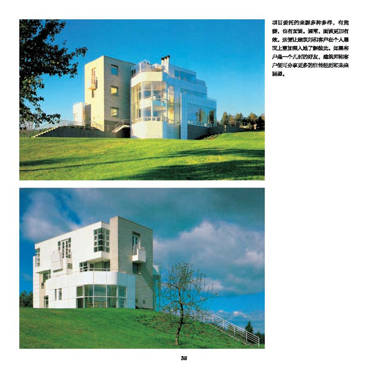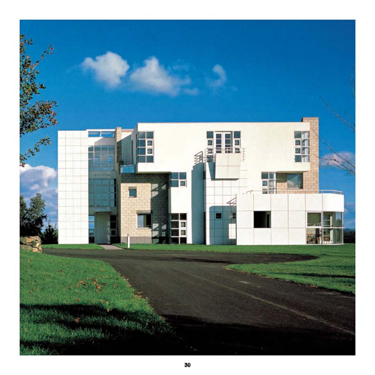 理查德·邁耶叢書共計六卷,收錄了理查德·邁耶以及邁耶工作室近50年來的全部設(shè)計作品。邁耶設(shè)計的產(chǎn)品都頗為簡練,既包括居家設(shè)計也包括商用設(shè)計。他設(shè)計的作品最大的特點是永遠有自己的特性而不是在風(fēng)格上受別人的影響而迷惑。由于其大膽的風(fēng)格和值得稱頌的忠誠,邁耶創(chuàng)造出頗為獨特的粗壯風(fēng)格。為了在展示方面做得更好,他將斜格、正面以及明暗差別強烈的外形等方面和諧地融合在一起。邁耶的作品以“順應(yīng)自然”的理論為基礎(chǔ),表面材料常用白色,以綠色的自然景物襯托,使人覺得清新脫俗,他還善于利用白色表達建筑本身與周圍環(huán)境的和諧關(guān)系。在建筑內(nèi)部,他運用垂直空間和天然光線在建筑上的反射達到富于光影的效果,他以新的觀點解釋舊的建筑,并重新組合幾何空間。
