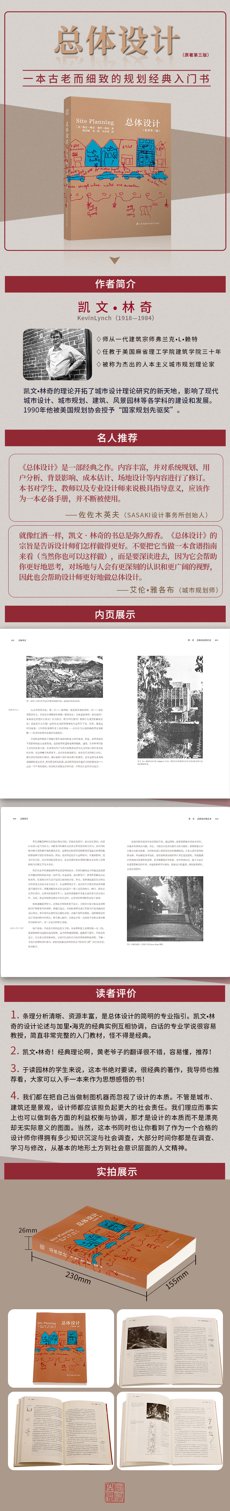 一本古老而細(xì)致的入門書,但其中關(guān)于設(shè)計(jì)的全過程以及對基地、行為、景觀、土方及公共管線、社會(huì)影響、利益權(quán)衡等,會(huì)讓你對一個(gè)完整的設(shè)計(jì)和設(shè)計(jì)師該盡到的社會(huì)責(zé)任有更進(jìn)一步的認(rèn)識(shí)。我們都在把自己當(dāng)做制圖機(jī)器而忽視了設(shè)計(jì)的本質(zhì)。不管是城市、建筑還是景觀,設(shè)計(jì)師都應(yīng)該擔(dān)負(fù)起更大的社會(huì)責(zé)任。我們理應(yīng)而事實(shí)上也可以做到各方面的利益權(quán)衡與協(xié)調(diào),那才是設(shè)計(jì)的本質(zhì)而不是漂亮卻無實(shí)際意義的圖面。當(dāng)然,這本書同時(shí)也讓你看到了作為一個(gè)合格的設(shè)計(jì)師你得擁有多少知識(shí)沉淀與社會(huì)調(diào)查,大部分時(shí)間你都是在調(diào)查、學(xué)習(xí)與修改,從最基本的地形土方到社會(huì)意識(shí)層面的人文精神。