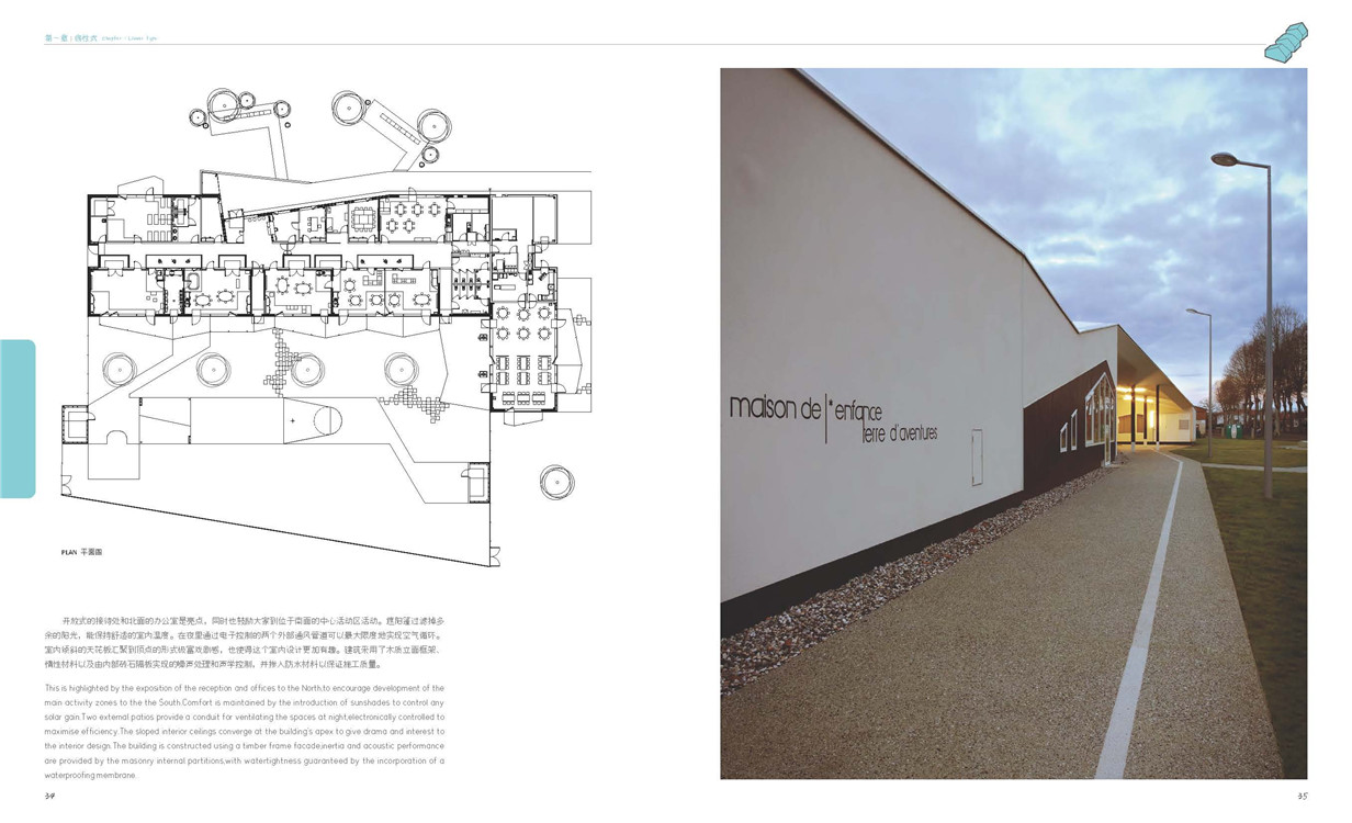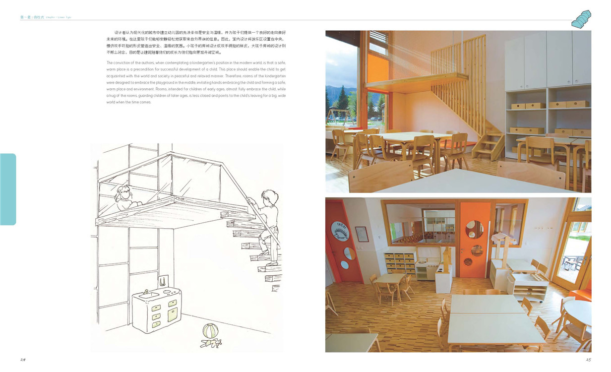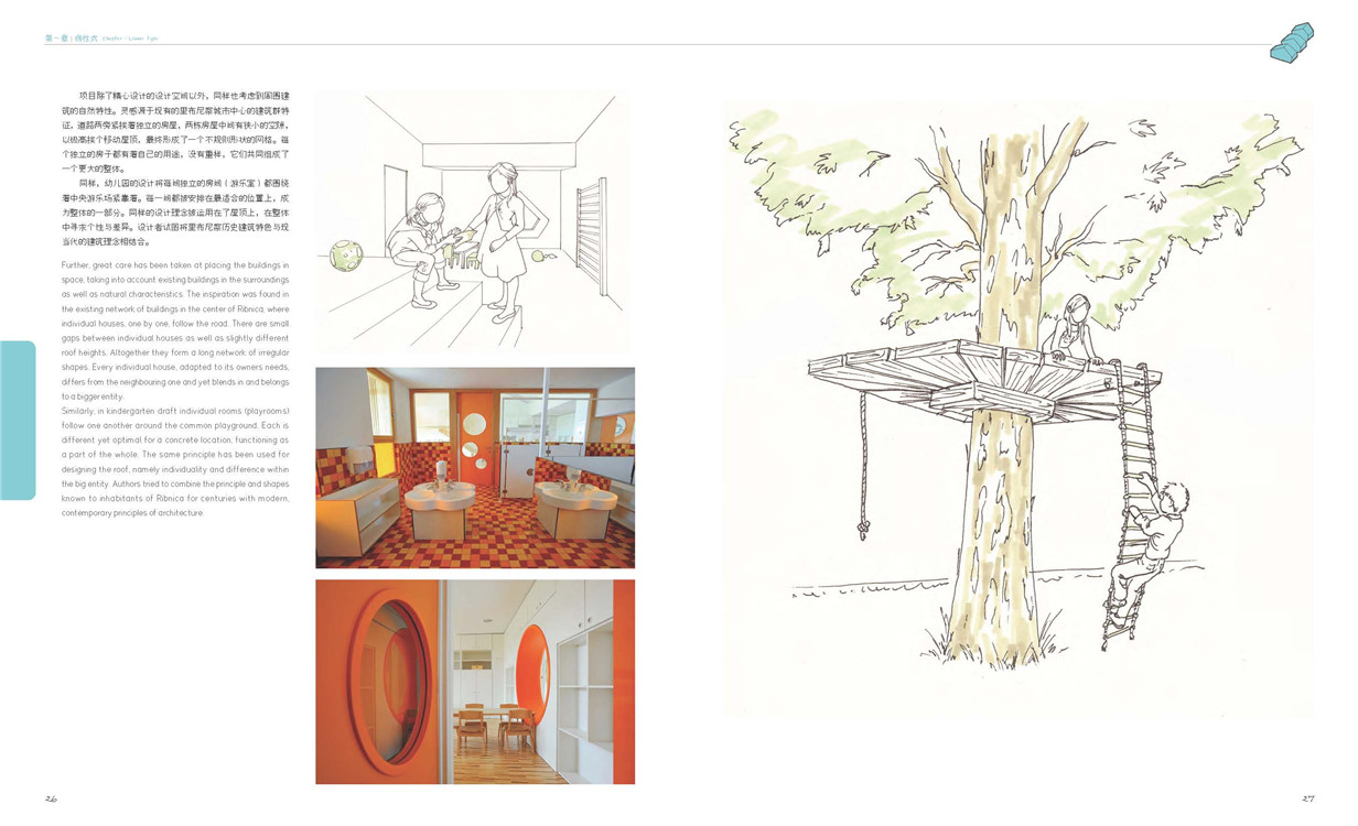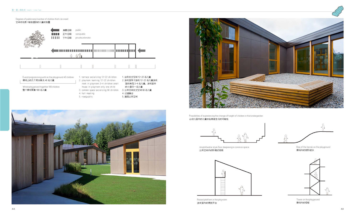 收錄了33個(gè)國(guó)外最新幼兒園案例,每一個(gè)案例都有詳細(xì)的分析和精美的照片。從建筑的形式上分為四大類(lèi):線性式、集中式、院落式和集中式。展現(xiàn)了最新國(guó)際幼兒園的新的設(shè)計(jì)趨勢(shì)。給幼兒園的設(shè)計(jì)者、經(jīng)營(yíng)者和教育者新的啟發(fā)與思考。