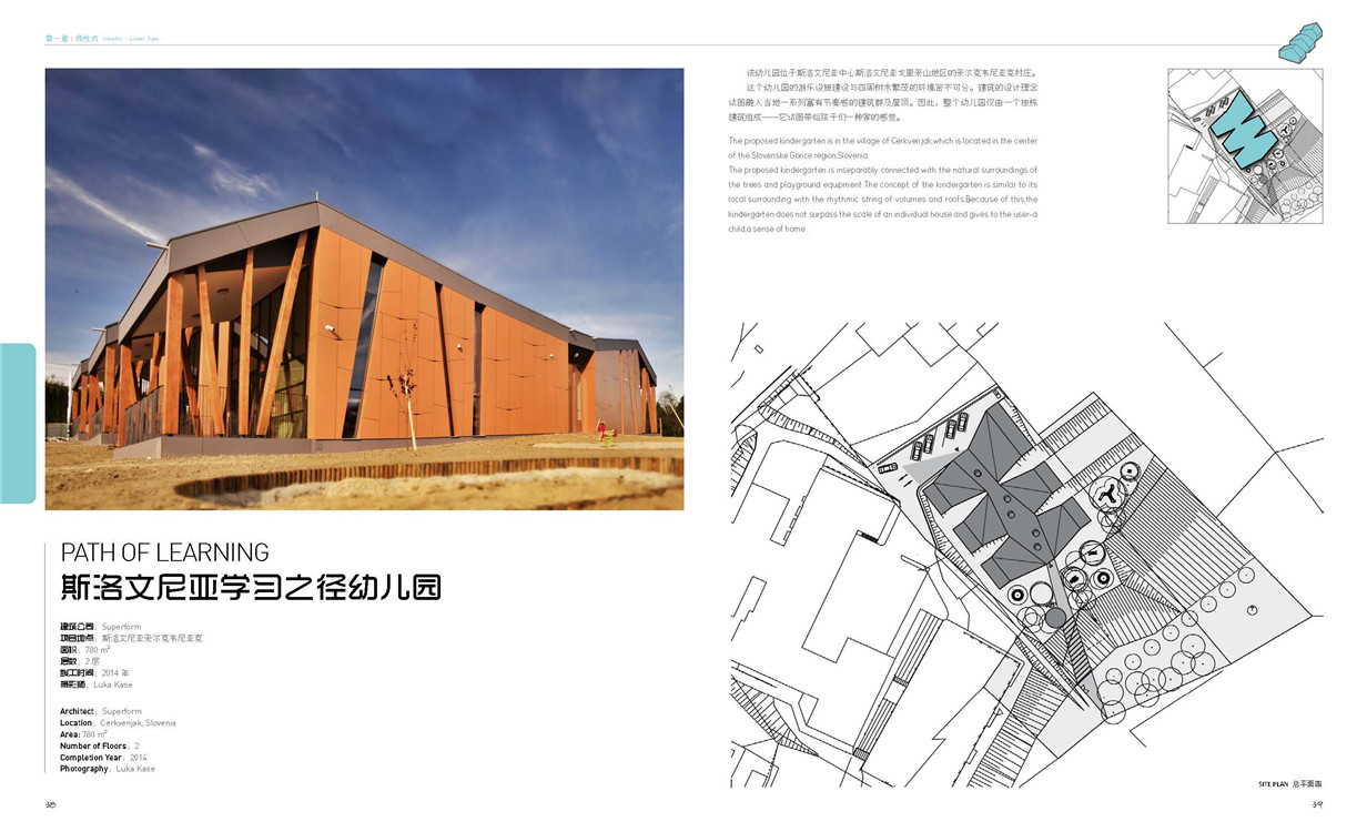 本書(shū)收錄了國(guó)際最新幼兒園設(shè)計(jì)案例33個(gè),從建筑的形式上分為四大類(lèi):線性式、集中式、院落式和集中式。展現(xiàn)了最新國(guó)際幼兒園的新的設(shè)計(jì)趨勢(shì)。給幼兒園的設(shè)計(jì)者、經(jīng)營(yíng)者和教育者新的啟發(fā)與思考。
