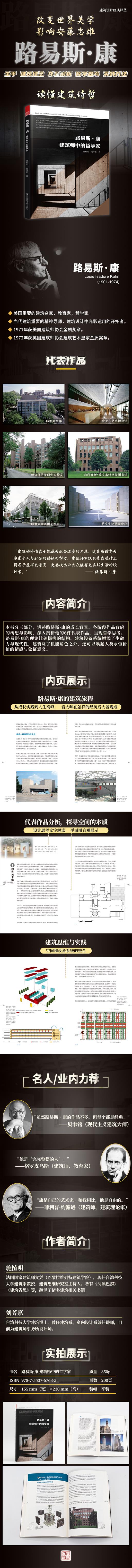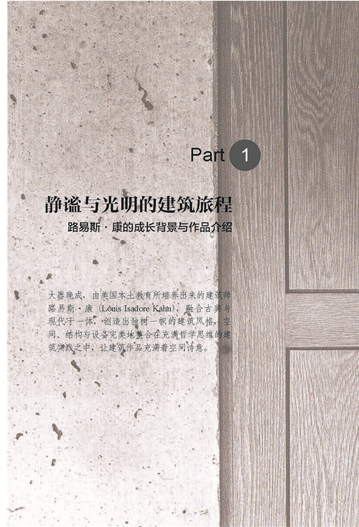 路易斯·康(Louis I. Kahn)是繼賴特(Frank Lloyd Wright)之后,美國最具影響力的建筑名家之一。在相對短暫的建筑生涯中,創(chuàng)造出非常多的傳世之作,完成設計作品的優(yōu)質率非常驚人。本書不僅對路易斯·康的作品進行解讀,對他本人也做了介紹,整本書由簡入深,書籍結構緊湊,非常適合閱讀。本書分三大部分。第一部分介紹了路易斯·康的成長背景、各階段作品背后的構想與影響。第二部分是路易斯·康六件代表性作品的深入賞析。第三部分是路易斯·康的哲學思考,他的理論讓硬梆梆的結構、建筑設備系統增添了生命力與現代性。