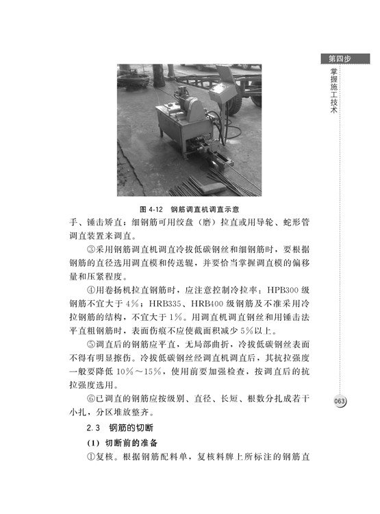 本書(shū)以住房和城鄉(xiāng)建設(shè)部建筑工程施工職業(yè)技能標(biāo)準(zhǔn)為編寫(xiě)依據(jù),將鋼筋工上崗分為五步:第一步———確保上崗資格;第二步———遵守行業(yè)規(guī)范;第三步———熟悉材料工具;第四步———掌握施工技術(shù);第五步———保障施工安全。