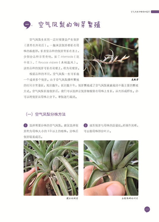 空氣鳳梨的養(yǎng)護(hù)選育都是作者在國(guó)內(nèi)的經(jīng)驗(yàn)總結(jié),適用于國(guó)內(nèi)的基本情況。雜交與選育則是結(jié)合國(guó)內(nèi)外的經(jīng)驗(yàn),分享最簡(jiǎn)便可行的方法,讓讀者也能享受到培育屬于自己的新品種的樂(lè)趣。