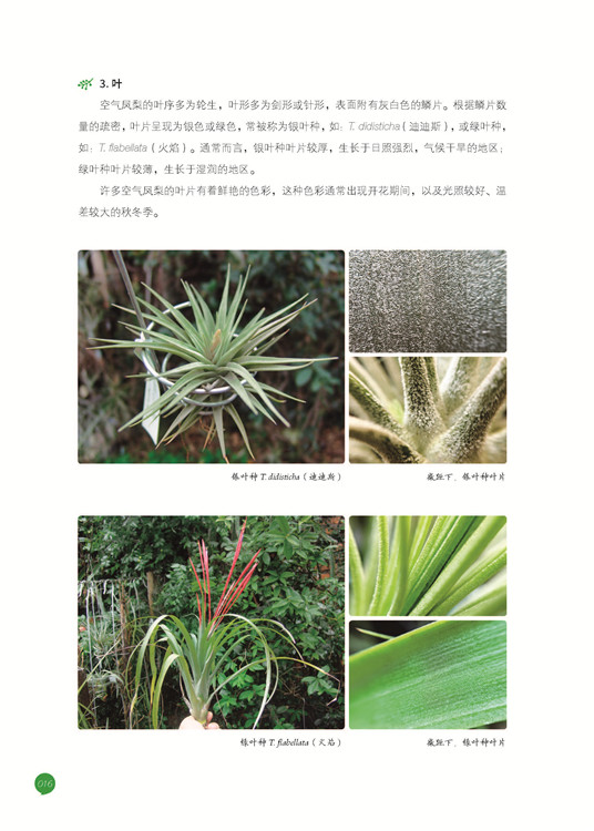 書中的養(yǎng)護(hù)常識(shí)適用于本土,空氣鳳梨造景更是展現(xiàn)了它多變的特性。書中的圖鑒收錄了400個(gè)品種,包含大多數(shù)國(guó)內(nèi)常見(jiàn)品種,國(guó)外稀有品種和一些獨(dú)特的品種,更列出了每個(gè)品種的父本和母本,開(kāi)拓眼界之余,更深入認(rèn)識(shí)身邊的空氣鳳梨。