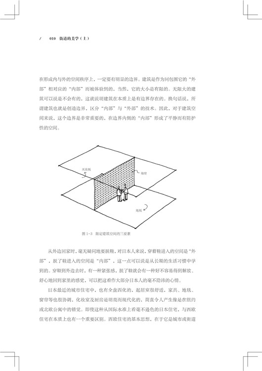 蘆原義信同時有東方和西方教育和工作的背景,在書中對比了日本、意大利、法國等歐洲國家的建筑環(huán)境和街道、廣場等外部空間,做了深入細致的分析。歸納出東西方在文化體系、空間觀念、哲學思想以及美學觀念等方面的差異,并對如何接受外來文化和繼承民族傳統(tǒng)問題,提出了許多見解。