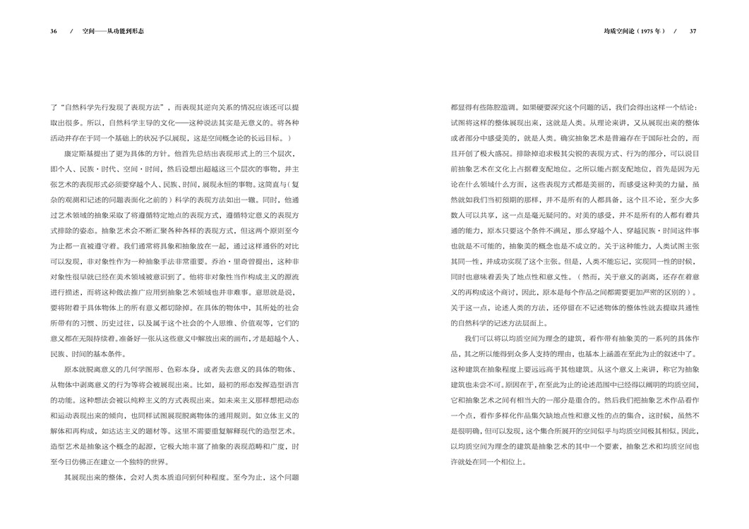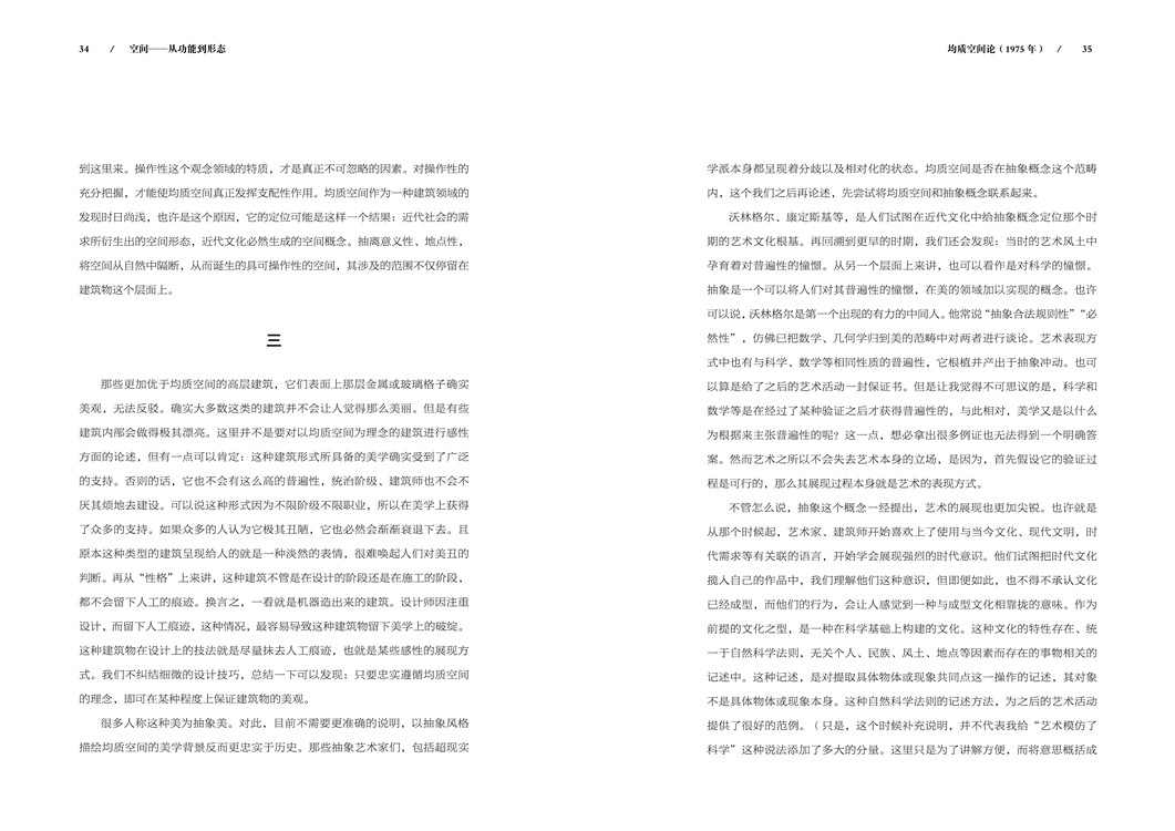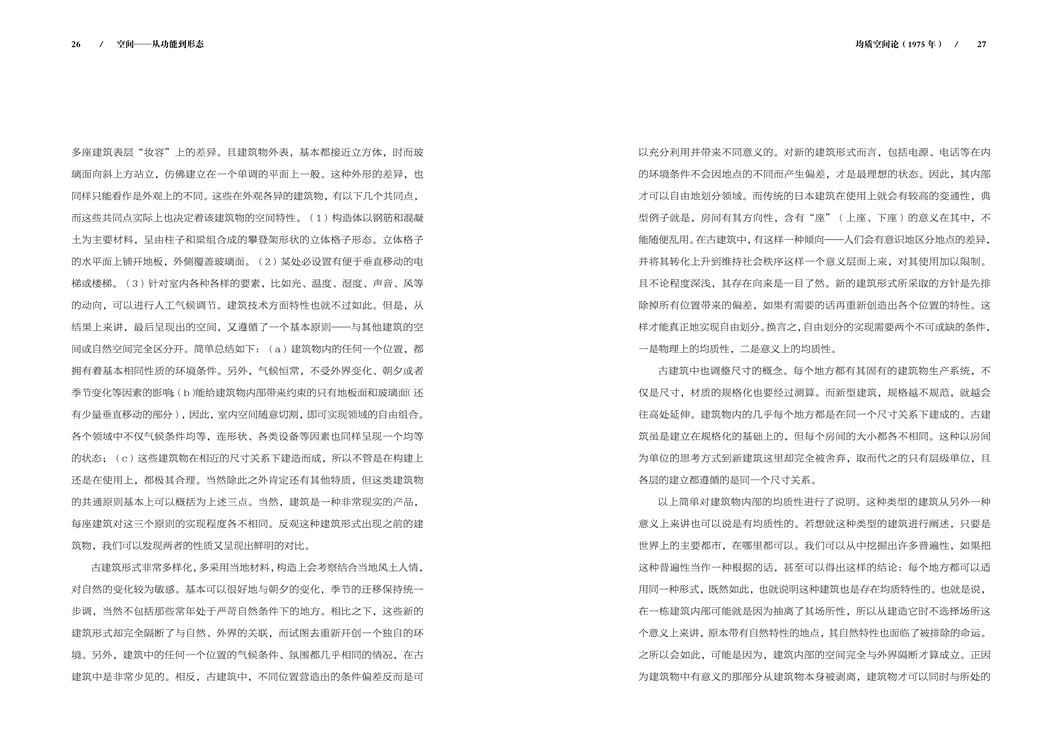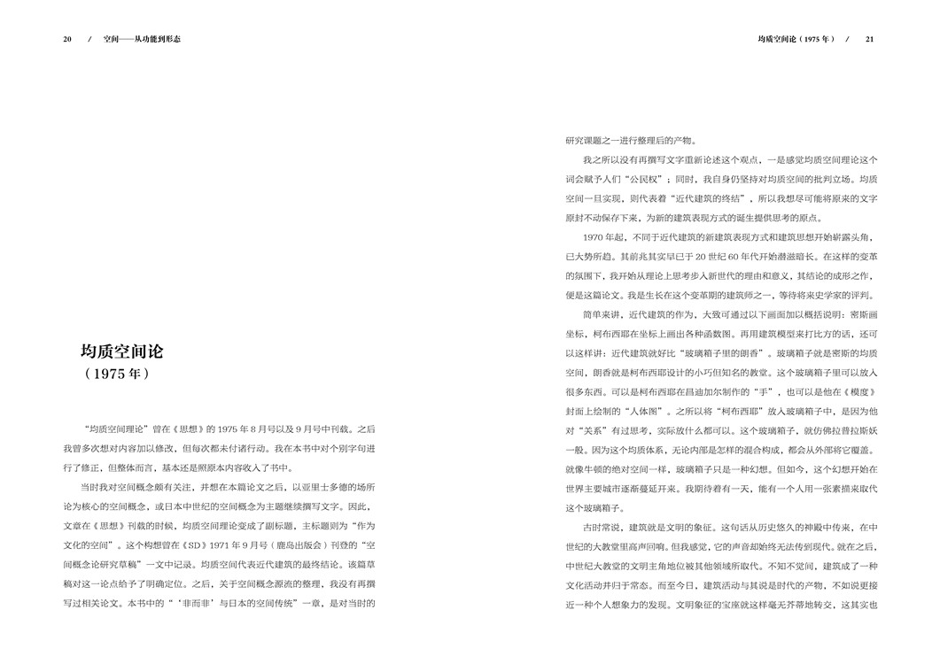 “均質(zhì)空間理論”一章,像是深處谷底的一種抗議,他從在20 世紀(jì)70 年代至80 年代反復(fù)論述書寫過(guò)的關(guān)于“萬(wàn)物皆為整體”,還有定家的詩(shī)歌、“非而非”等文章中,選擇了一些相對(duì)概括的內(nèi)容,融匯到本章。