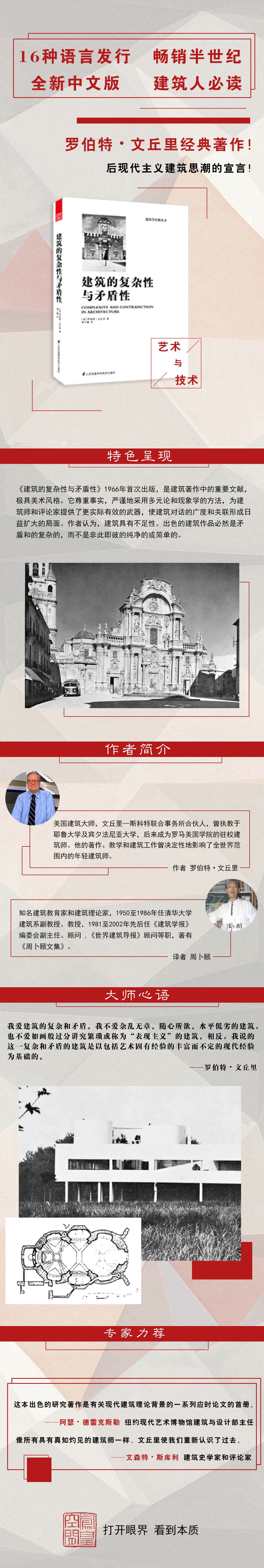 《建筑的復(fù)雜性與矛盾性》一書(shū)自1966年首次出版以來(lái),已經(jīng)以16種語(yǔ)言出版發(fā)行,并成為建筑著作中的重要文獻(xiàn)。羅伯特·文丘里的著作《建筑的復(fù)雜性和矛盾性》(1966年)和 《向拉斯維加斯學(xué)習(xí)》(1972年)被認(rèn)為是后現(xiàn)代主義建筑思潮的宣言。