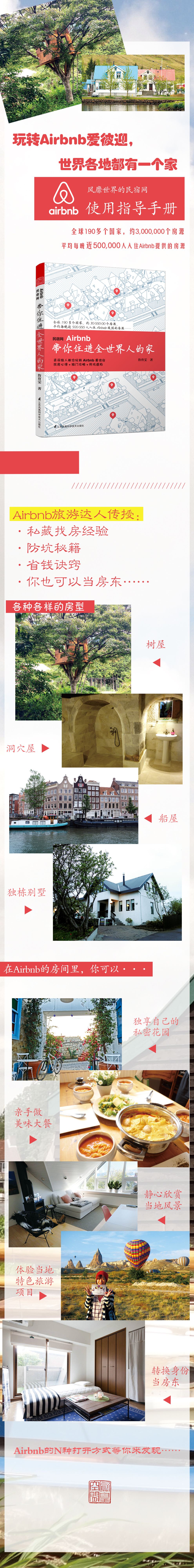 民宿網(wǎng)Airbnb近幾年登陸中國,引起了眾多青年人的熱烈響應,本書適應形勢,介紹了作者使用該平臺旅居全世界的經(jīng)歷,從如何認識Airbnb,到如何使用,再到如何出租自己的家,面面俱到,非常適合想使用Airbnb省錢或者賺錢的讀者。