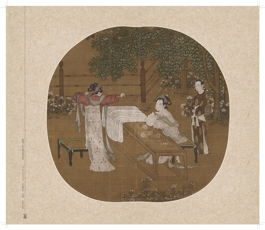 宋代的團(tuán)扇是宋代院體中發(fā)展出來的具有一定實(shí)用性、裝飾性、雅俗共賞的小幅繪畫作品。到了后期,已經(jīng)不僅僅以實(shí)用為目的,而向更具有觀賞性、藝術(shù)性的裝飾品靠攏,為了滿足帝王賞閱的需求,團(tuán)扇經(jīng)拆裱制成冊頁形式。實(shí)物今天尚能見到,尤其是宋代的繪畫作品,保存至今的有相當(dāng)一部分是畫在團(tuán)扇上的,且不乏出自名家之手。由于年代久遠(yuǎn),這種團(tuán)扇畫多為絹本扇頁的形式出現(xiàn)。扇面入字入畫,使人賞心悅目,給人以美的享受。欣賞扇面書畫務(wù)須細(xì)細(xì)品味,慢慢咀嚼其中的藝術(shù)意蘊(yùn)。宋代的團(tuán)扇畫對(duì)之后的元、明、清乃至近、現(xiàn)代都有深遠(yuǎn)的影響,它的意蘊(yùn)、風(fēng)格和技藝一直延續(xù)著其獨(dú)特的魅力。時(shí)至今日,歷經(jīng)上千年,宋代團(tuán)扇畫也依然能夠滿足現(xiàn)代人的審美訴求。