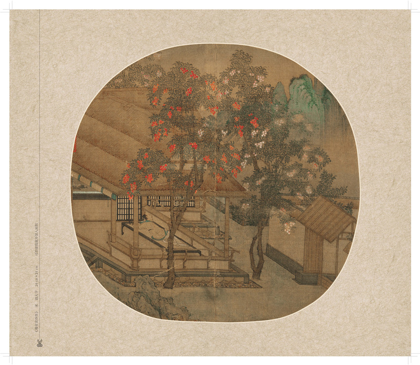 宋代的團(tuán)扇是宋代院體中發(fā)展出來(lái)的具有一定實(shí)用性、裝飾性、雅俗共賞的小幅繪畫作品。到了后期,已經(jīng)不僅僅以實(shí)用為目的,而向更具有觀賞性、藝術(shù)性的裝飾品靠攏,為了滿足帝王賞閱的需求,團(tuán)扇經(jīng)拆裱制成冊(cè)頁(yè)形式。實(shí)物今天尚能見到,尤其是宋代的繪畫作品,保存至今的有相當(dāng)一部分是畫在團(tuán)扇上的,且不乏出自名家之手。由于年代久遠(yuǎn),這種團(tuán)扇畫多為絹本扇頁(yè)的形式出現(xiàn)。扇面入字入畫,使人賞心悅目,給人以美的享受。欣賞扇面書畫務(wù)須細(xì)細(xì)品味,慢慢咀嚼其中的藝術(shù)意蘊(yùn)。宋代的團(tuán)扇畫對(duì)之后的元、明、清乃至近、現(xiàn)代都有深遠(yuǎn)的影響,它的意蘊(yùn)、風(fēng)格和技藝一直延續(xù)著其獨(dú)特的魅力。時(shí)至今日,歷經(jīng)上千年,宋代團(tuán)扇畫也依然能夠滿足現(xiàn)代人的審美訴求。