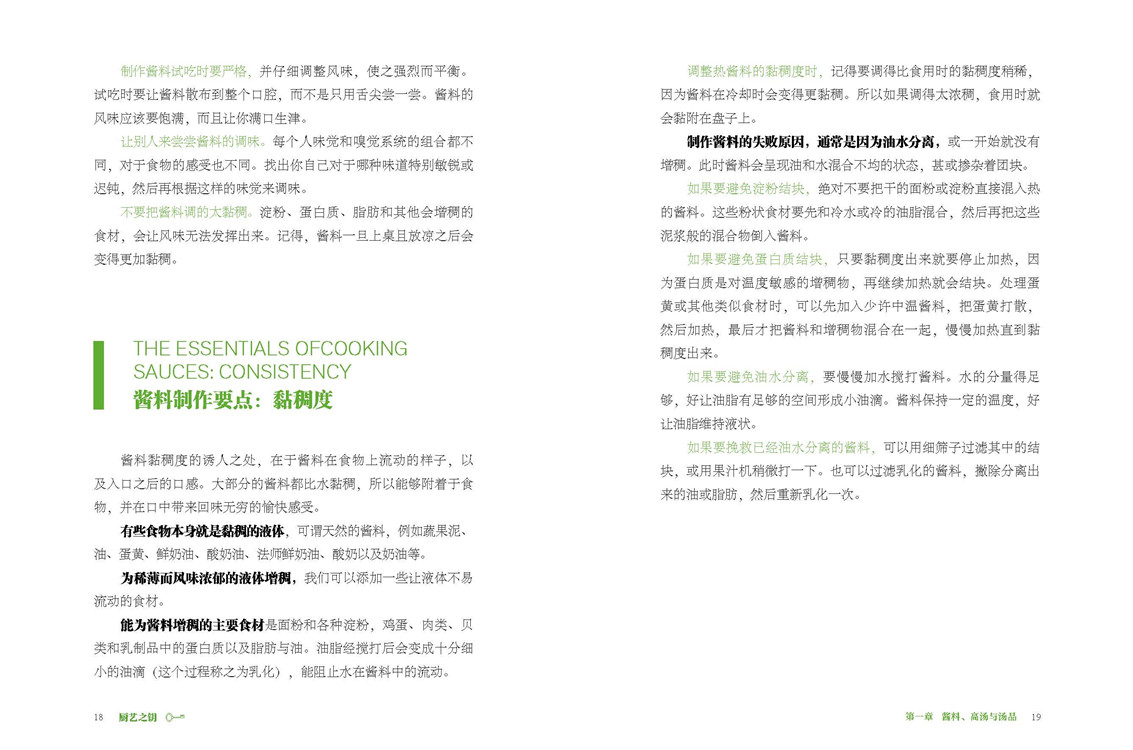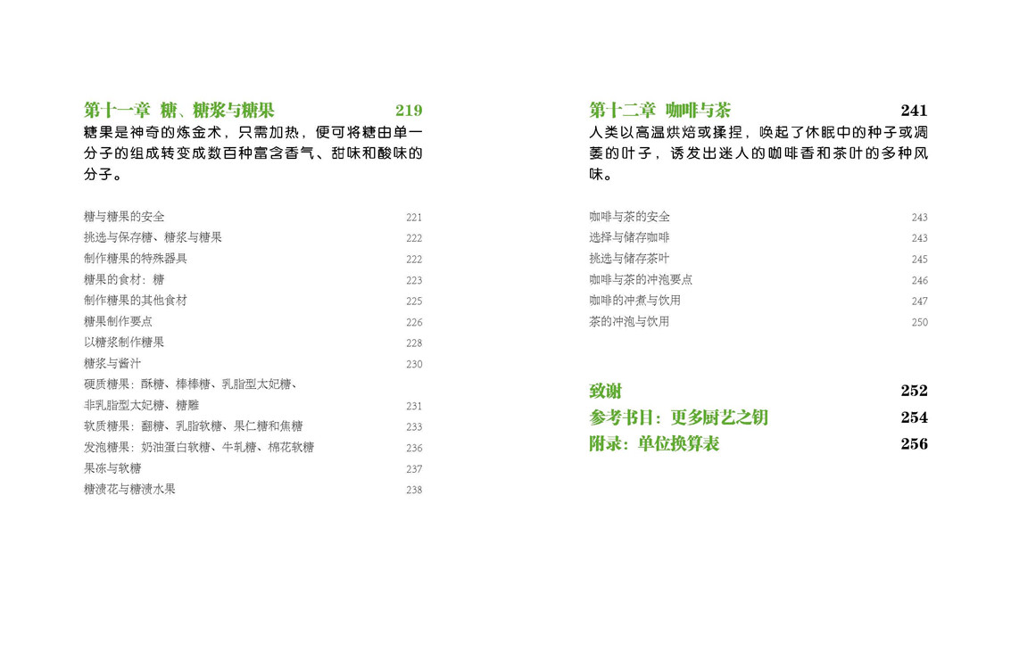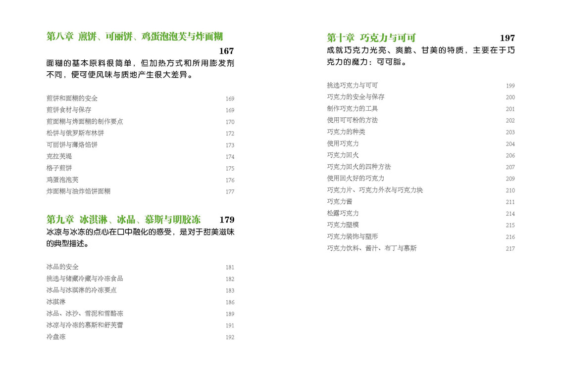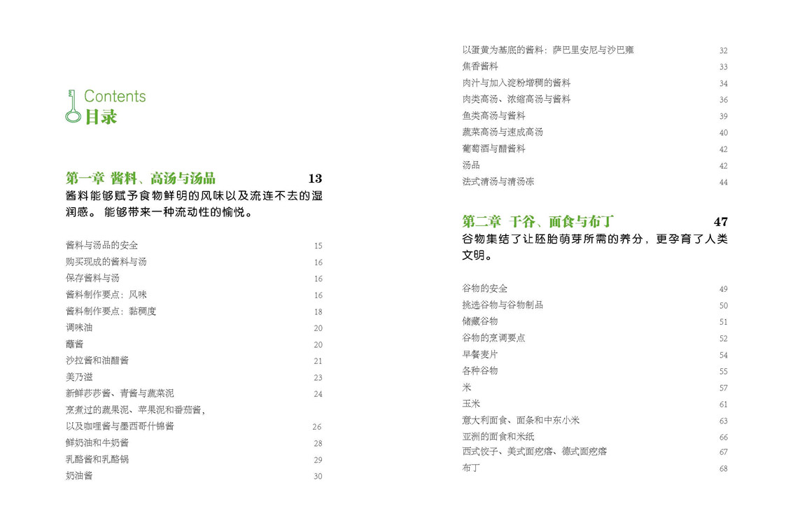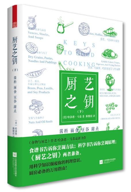《廚藝之鑰》(下)分為12章,與上冊(cè)內(nèi)容承上啟下,分別介紹了醬料、高湯與湯品、干谷、面食與布丁、豆類、堅(jiān)果與含油種子、面包、酥皮與派、和蛋糕、馬芬和小甜餅等食物的安全、挑選方式、食材的各種形式等內(nèi)容,提供了關(guān)于料理的正確知識(shí),食材特性和處理原則,挑戰(zhàn)并改良既定的傳統(tǒng)烹調(diào)技巧。