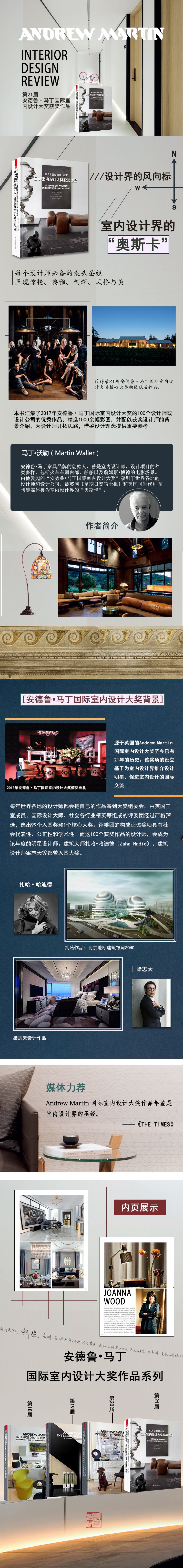 本書匯集了2017年安德魯·馬丁國際室內設計大獎的100個設計師/設計公司的優(yōu)秀作品,1000余幅彩圖,配以每位獲獎設計師的背景介紹,為讀者們提供了更多的借鑒和靈感。