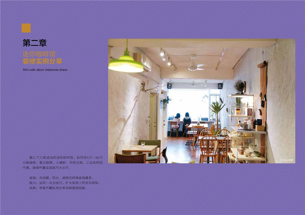 咖啡館是很多文藝青年樂意盤桓的地方,開一家小而美的咖啡館,也是許多年輕人的創(chuàng)業(yè)夢想,但如何開一間咖啡館涉及到很多問題,選址、定格調(diào)、裝修、設(shè)計,開起來之后,有涉及到經(jīng)營、品牌等諸多問題。為了解決大家這方面的煩惱,我們推出了這本書,《迷你咖啡館設(shè)計經(jīng)營一本通》從立項到選址、設(shè)計、再到裝修、經(jīng)營,咖啡館涉及到的基本問題,本書一一都有解釋,更有十二家有著幾十年歷史的咖啡老店,為大家現(xiàn)身說法,講解自己的盈利之道。切實為有著咖啡館夢想的讀者解決實用難題,是一本不可多得的隨身參考書。