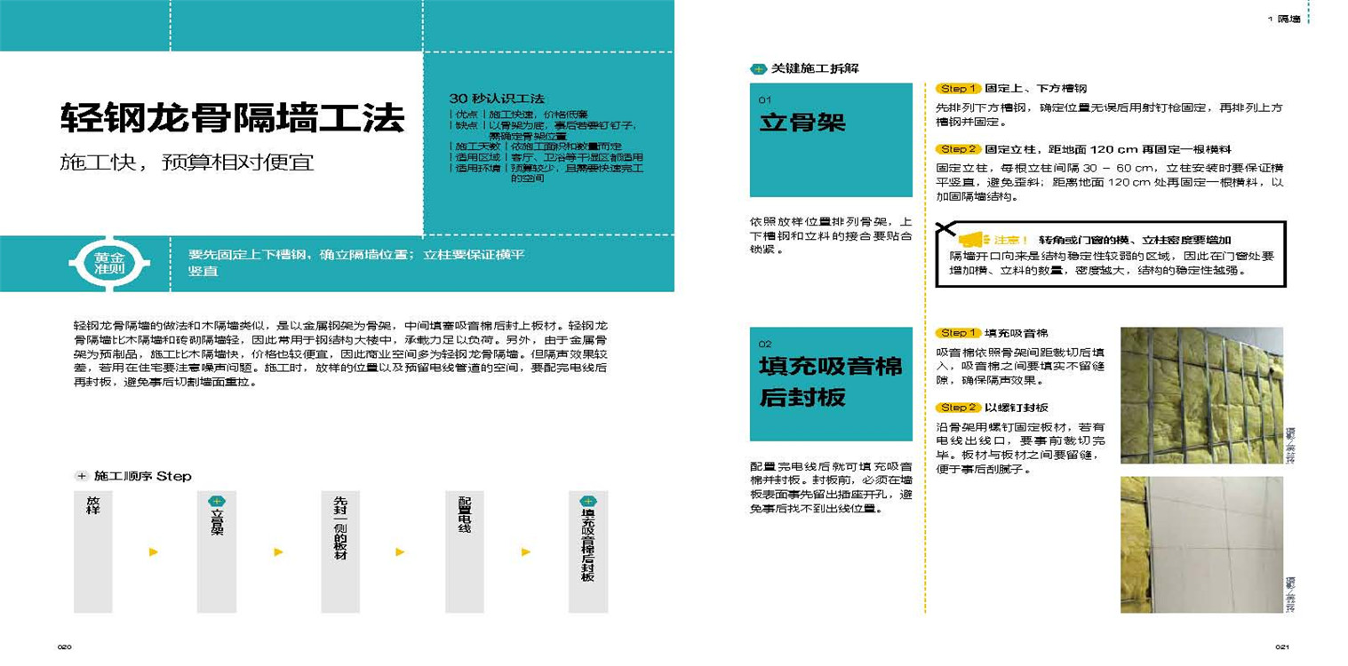 講解工法正確步驟,列出重點(diǎn)步驟,施工更安心;解析不同工法差異,了解適用環(huán)境,才能對(duì)癥下藥;揭露施工常犯錯(cuò)誤,警示工程常見問題,確保施工順利;闡釋材質(zhì)各自特性,同種材質(zhì)也有施工差異,順應(yīng)不同材質(zhì),改變施工做法。一步驟一圖解,拆解基礎(chǔ)技法,圖解化施工細(xì)節(jié),讓你一看就懂,輕松搞定施工難題。