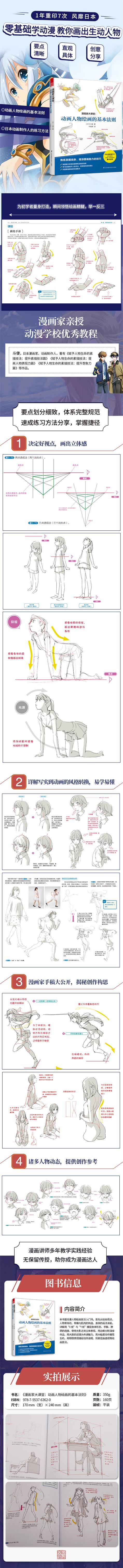 本書作者是日本資深漫畫家,從事多年漫畫教學。作者以漫畫家的視角,從漫畫的基本法則和動畫人物描繪手法兩個方面,通過以圖解文的方式,詳細解說了人物形象的塑造、人物的動作、人物的立體五官、表情、身體姿勢等部分的動畫人物的繪畫技法以及使用光與影展現人物形象的表現手法。