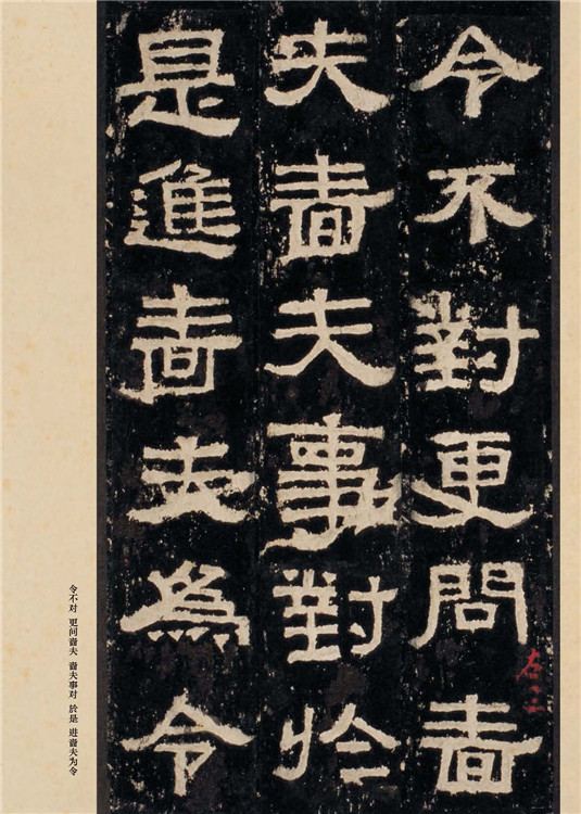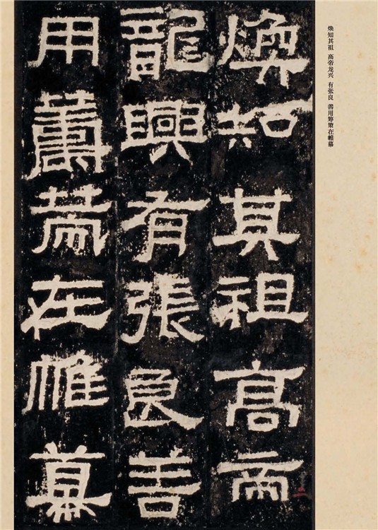 《張遷碑》個(gè)性風(fēng)格突出,屬渾厚拙樸一類。道勁雄強(qiáng),厚重樸拙,氣勢(shì)開張,骨力洞達(dá),樸實(shí)無華,高古脫俗。《張遷碑》的刻工并不精細(xì),對(duì)書丹有明顯的改造痕跡,一些筆畫鑿刻得不到位,甚至有漏刻的現(xiàn)象。由于工匠的二度加工,該碑既存原有書丹成分,又加上了工匠的改造,雖略顯粗率拙陋,但卻在無形中增加了質(zhì)樸率真的情趣。