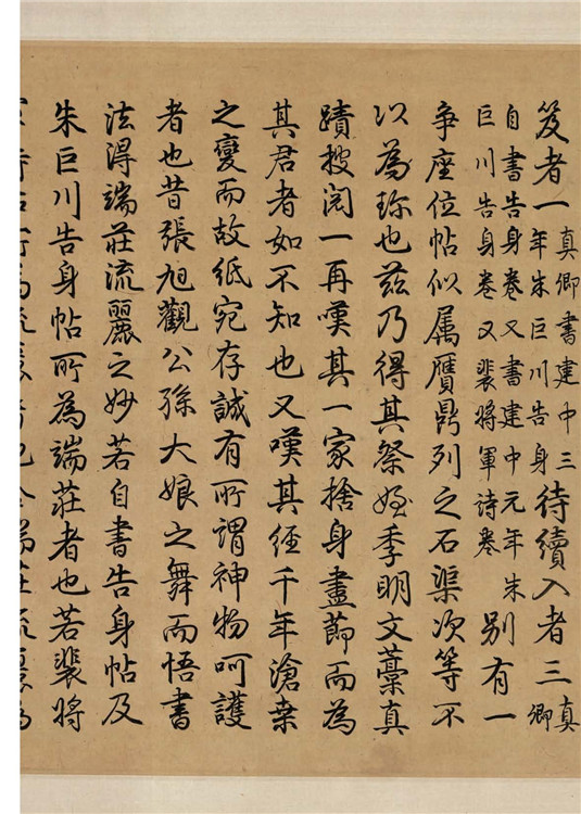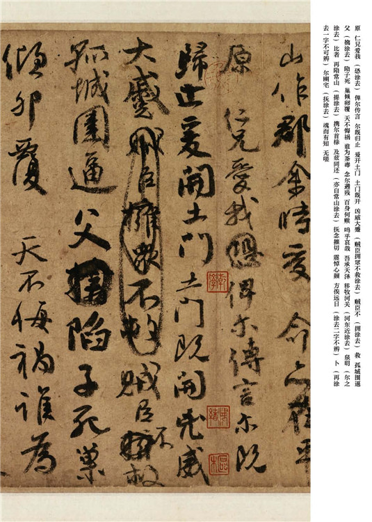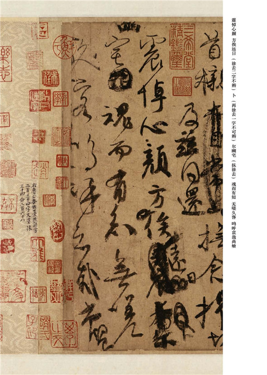 《祭侄文稿》,又稱《祭侄季明文》,顏真卿書,時(shí)年五十,自署書于乾元元年( 公元758年)九月三日。麻紙本,行草書,文稿一篇,凡25行,計(jì)334字,縱28.16 厘米橫72.32厘米,現(xiàn)藏于臺(tái)北故宮博物院。