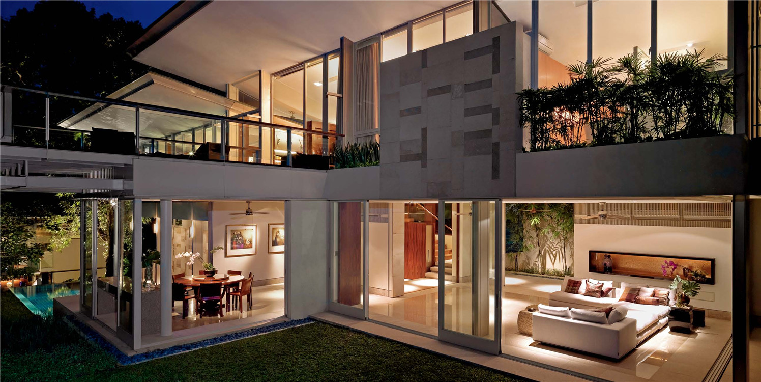 WOW 建筑事務(wù)所的作品能夠和諧地融入到現(xiàn)代區(qū)域環(huán)境中。事務(wù)所以新加坡為實(shí)踐基地,項(xiàng)目遍及東南亞、南亞地區(qū),我們可以看到其作品沿襲自杰弗里·巴瓦(Geoffrey Bawa), 他是同類型建筑師的先驅(qū)。在巴瓦的作品中,我們發(fā)現(xiàn)了起源于洛吉耶(Laugier)原始小屋的純粹——人、住所、自然,以及邊界。如果考察現(xiàn)代區(qū)域必不可少的特征要素,WOW 建筑事務(wù)所的作品切實(shí)地滿足了所有標(biāo)準(zhǔn)——建筑與環(huán)境的協(xié)調(diào)、室內(nèi)外的融合,以及材料的本土化運(yùn)用。但仔細(xì)觀察發(fā)現(xiàn),倡導(dǎo)建筑與自然間的和諧關(guān)系仍是優(yōu)先考慮的,而不再是使環(huán)境浪漫化。與巴瓦作品中翠綠的熱帶地區(qū)和鄉(xiāng)下破敗的背景下工作不同,我們發(fā)現(xiàn)自己正面對(duì)的是快速發(fā)展中或是發(fā)達(dá)城市水泥砂礫的現(xiàn)實(shí)環(huán)境。