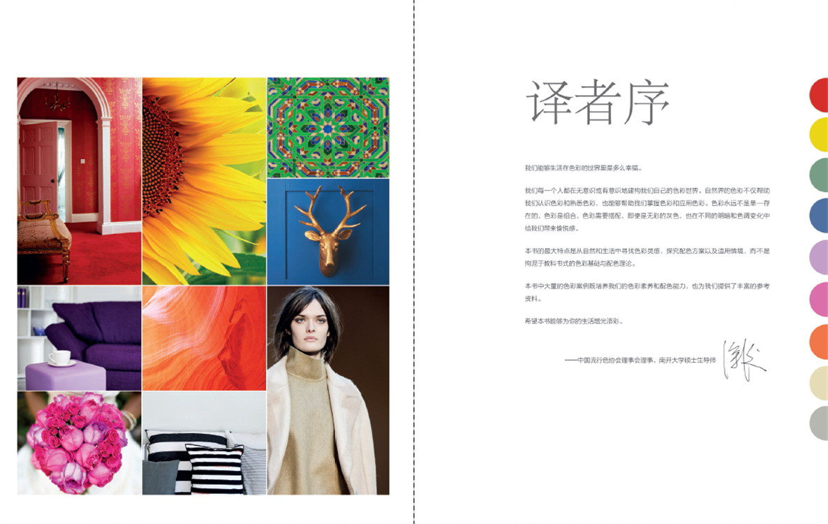 本書是美國舊金山知名室內(nèi)設(shè)計(jì)師珍妮弗·奧特的新作,有針對(duì)性地選取了9大色系共125個(gè)配色方案,不僅介紹了實(shí)用的色彩搭配范圍和法則,而且闡述了不同的色彩搭配所代表的文化內(nèi)涵和所營造的格調(diào)氛圍等,配色方案涵蓋范圍相當(dāng)廣泛,包括家居裝飾、婚禮慶典、形象配飾、蛋糕裝飾等方面。書中文字生動(dòng)且貼切,選用“天空中的太陽”“彩虹之上”“夏季向日葵”“暗色迷迭香”“水漾清波”等富有詩意的詞語為色彩添上點(diǎn)睛之筆。精美的圖片結(jié)合CMYK、RGB色值及配色比例,使配色方案豐富且實(shí)用,將知識(shí)性、實(shí)用性、收藏性集于一身,為廣大色彩愛好者及室內(nèi)設(shè)計(jì)師、平面設(shè)計(jì)師帶來豐富的靈感啟發(fā),具有很高的借鑒及參考價(jià)值。