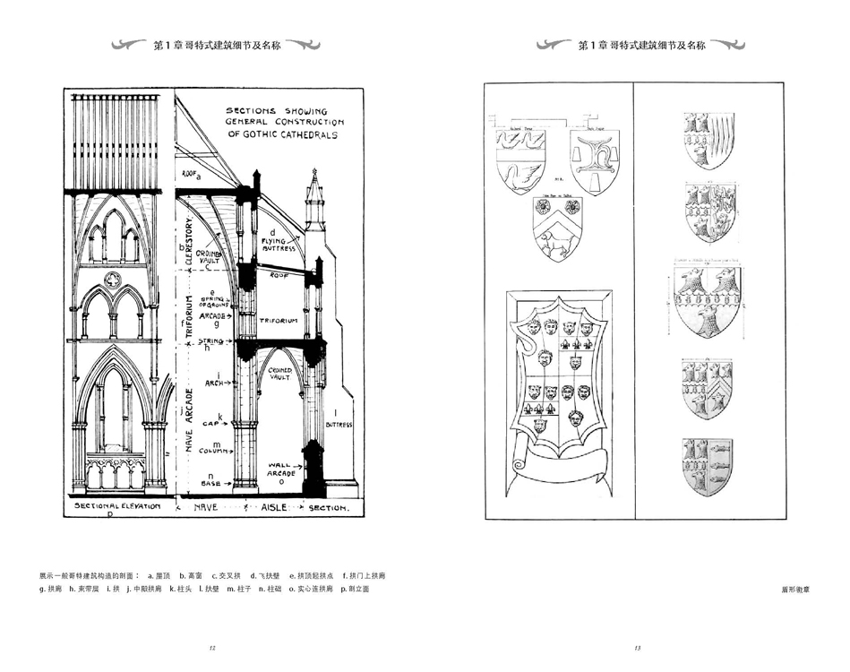 《哥特建筑與雕塑裝飾藝術(shù) 第1卷》這本圖卷的內(nèi)容是從兩本成書(shū)于18世紀(jì)的公版書(shū)《哥特式建筑類型》(上下卷)、《哥特式建筑》中整理而成,其主要介紹了哥特式建筑的風(fēng)格和類型。