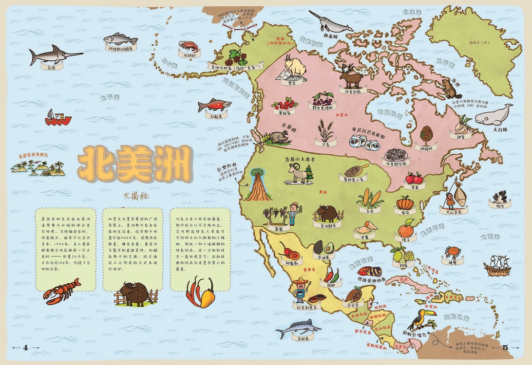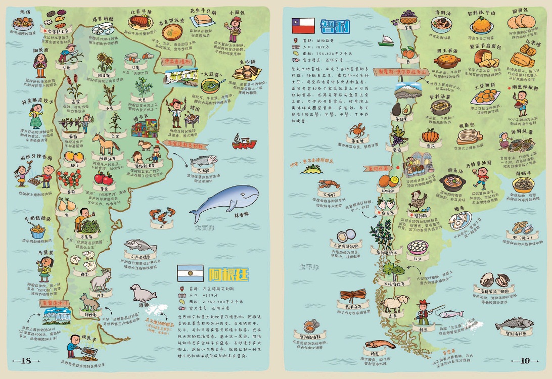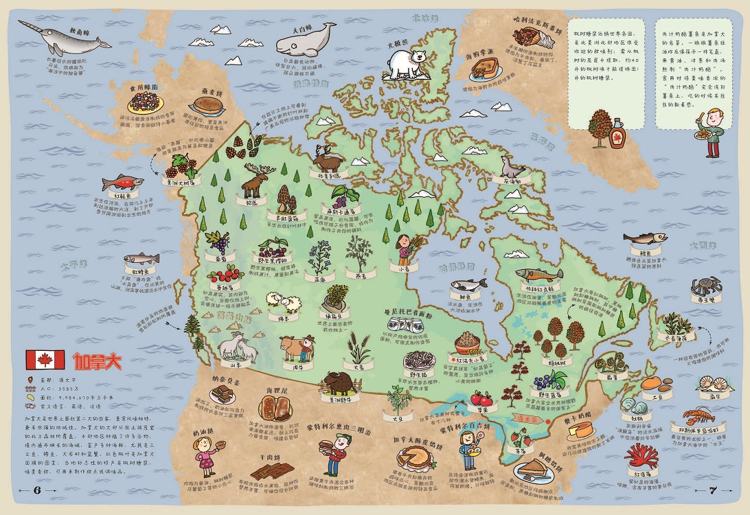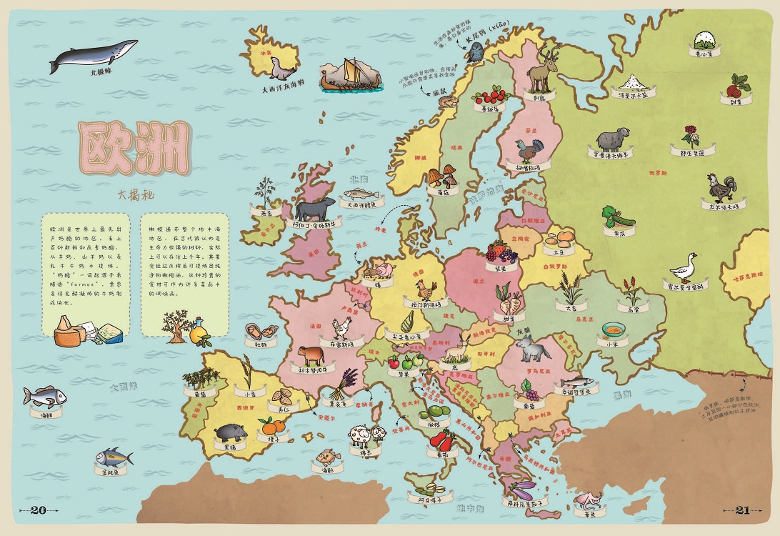 本書中食物地圖介紹了全球部分國家或地區(qū)的農(nóng)作物、動物、土特產(chǎn)及獨特的美食配方。動物、植物會打破國與國之間的劃分界線,你還會發(fā)現(xiàn)獨特的美食是除國界線外,區(qū)分國與國之間的更具代表性的事物。