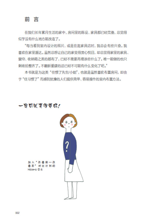 在我們長(zhǎng)年累月生活的家中,房間里的陳設(shè)、家具都已經(jīng)完備,雖然覺得乏味想要改造,卻不知從何下手。這本書正是為了解決這個(gè)煩惱而寫的。