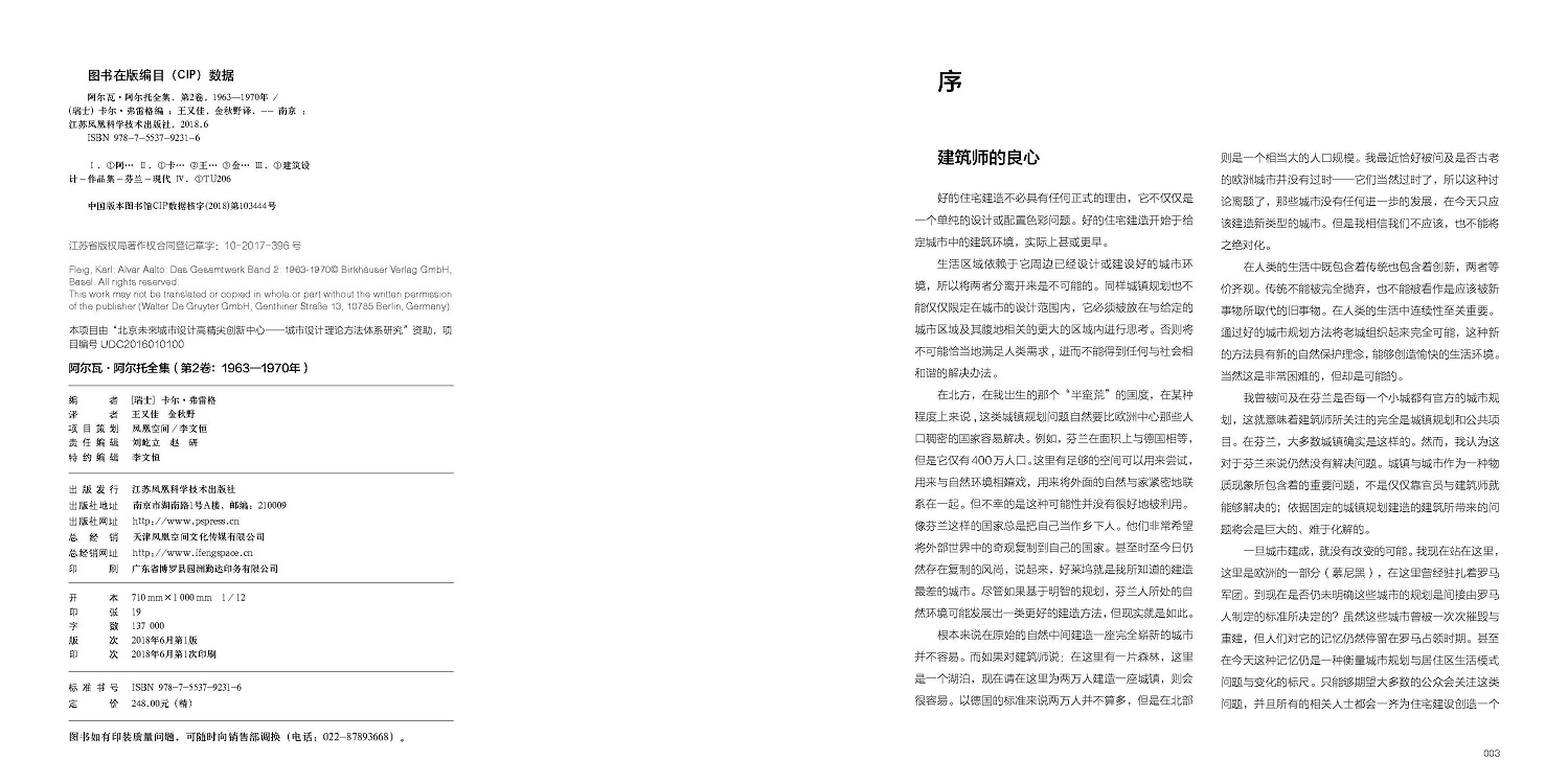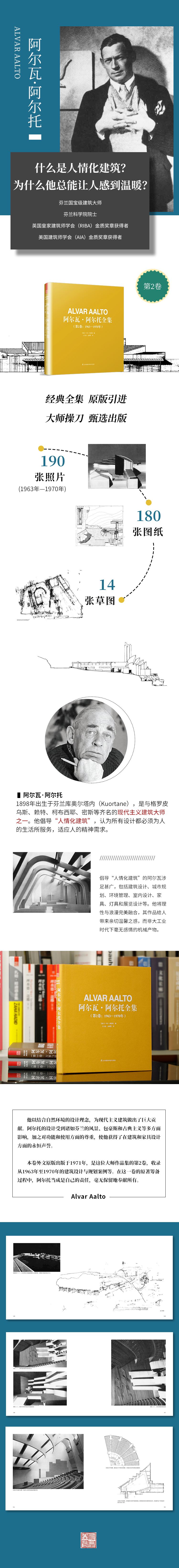 本卷外文原版出版于1971年,是這位大師作品集的第2卷,收錄從1963—1970年的建筑設計與規(guī)劃案例等,包括文化中心、劇院、博物館、圖書館和教堂等。在這一卷的原著籌備過程中,阿爾托當成是自己的責任,毫無保留地奉獻所有。本書沒有將阿爾托的建筑設計歸類于某種風格或流派,也沒有對他的作品小題大做,只是將他的建筑設計忠實、客觀、簡要地展示與陳述給讀者。