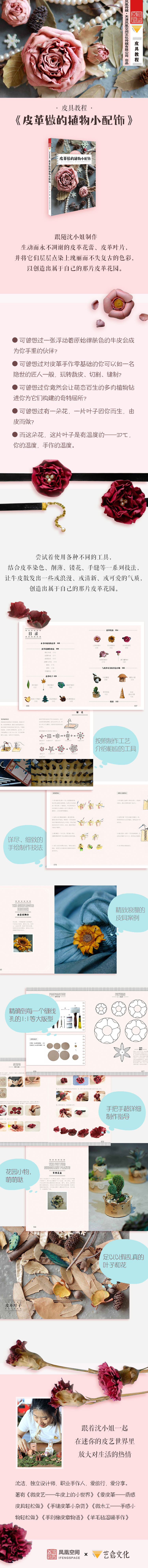 本書(shū)詳細(xì)介紹了用選皮、裁切、染色、鏤空、塑形、縫邊等技法將皮革制做成各種植物小配飾的過(guò)程,圖文并茂地展示作者獨(dú)具匠心的手作基礎(chǔ)技法和各種案例,并附有與實(shí)物等比例的版型,方便讀者制作出屬于自己的可愛(ài)配件。