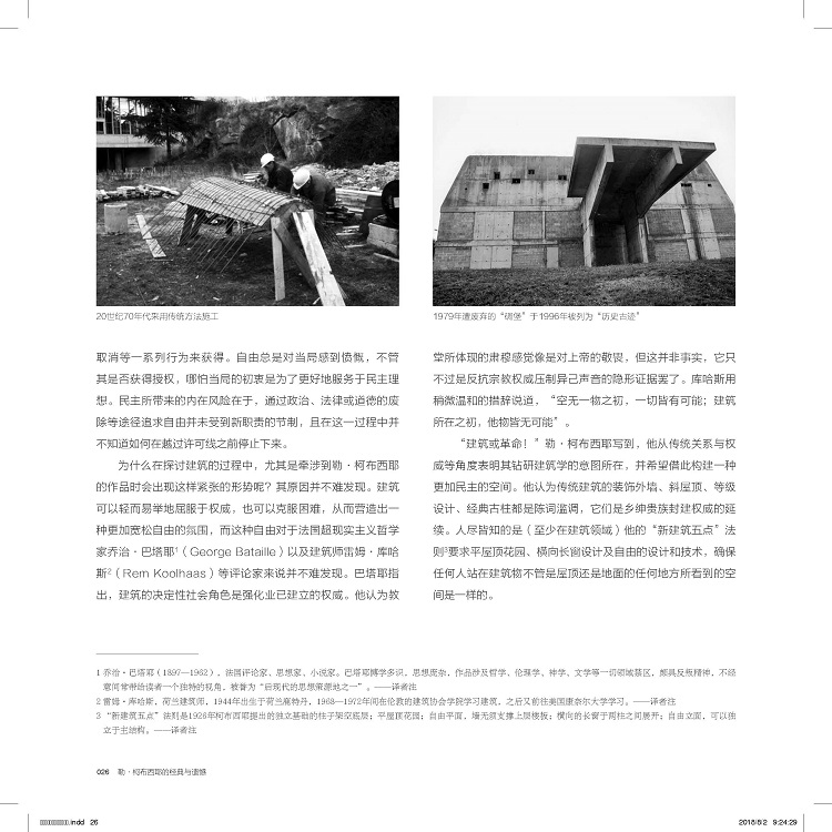 本書中詳細(xì)介紹了兩棟建筑杰作:一座是柯布西耶生前設(shè)計(jì)并建造一半,在他去世后40年才完成的菲爾米尼圣皮埃爾(Saint-Pierre)教堂,也有人稱之為“星空教堂”,是由柯布西耶的學(xué)生及助理若澤·烏貝里遵照原設(shè)計(jì)在2006年完工的;另一座是若澤·烏貝里自己設(shè)計(jì)的米勒莊園,是美國(guó)肯塔基州的一座地標(biāo)建筑,是烏貝里巔峰時(shí)期的作品。