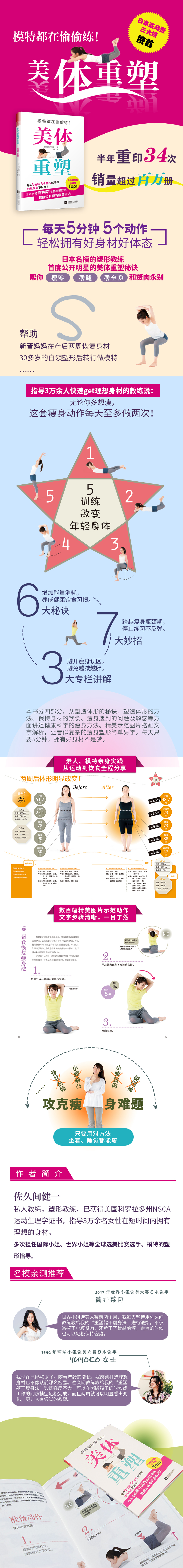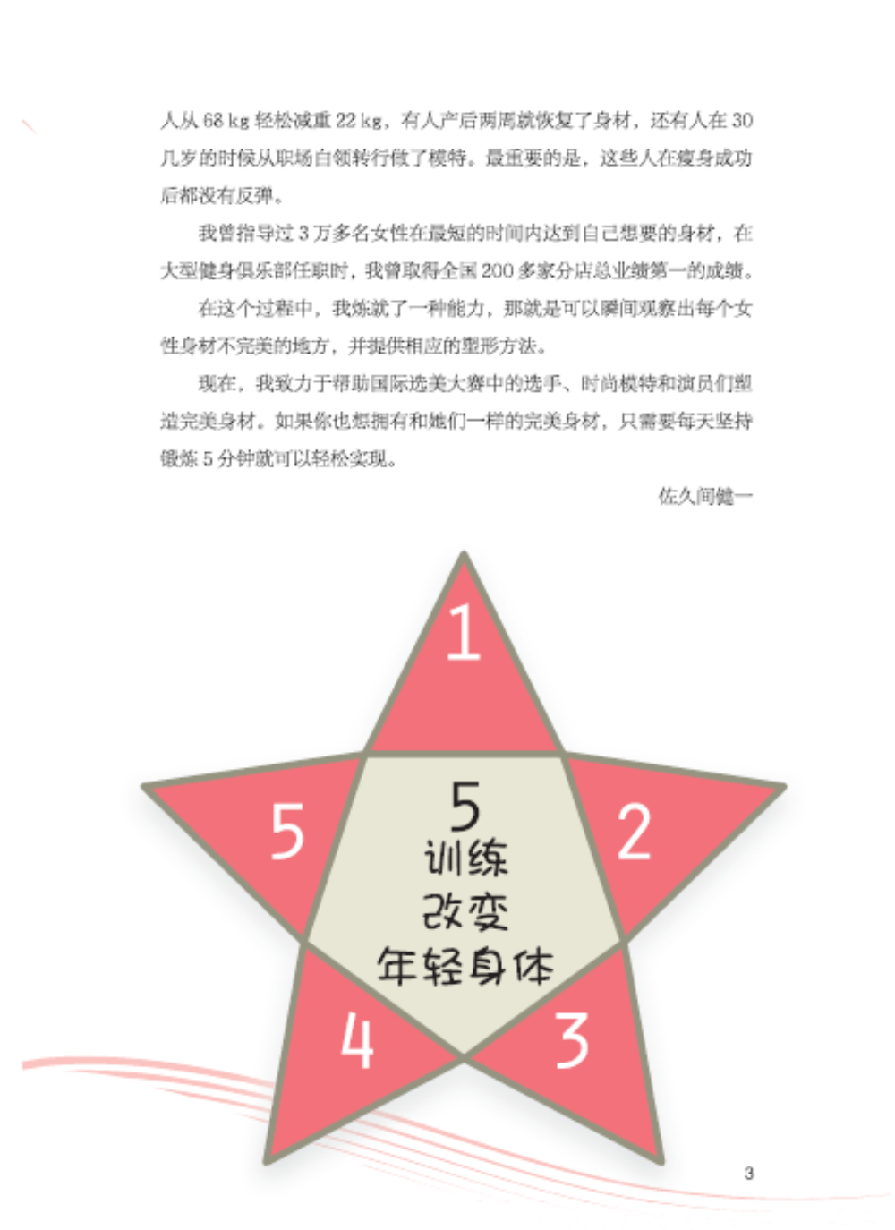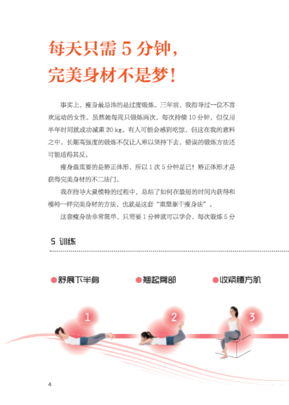 當(dāng)你看完這本精巧可愛的小書,相信你就不會再將瘦身塑形想象為“洪水猛獸”而不敢付諸行動(dòng)了,每天5分鐘,5個(gè)動(dòng)作,堅(jiān)持兩周相信你會看到明顯變化。