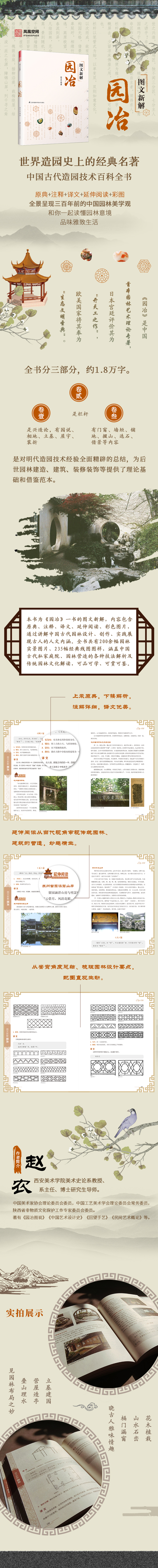 ?圖文新解園冶,原典+注釋+譯文+延伸閱讀+彩色圖片,圖文結(jié)合,以全新的方式解讀古代造園經(jīng)典《園冶》,是一本可品可學(xué)、可賞可鑒的園林藝術(shù)書籍