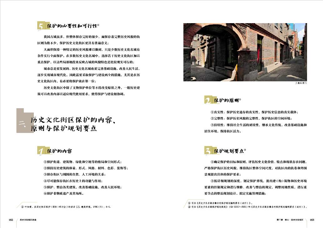 (1)完善而豐富的理論:讓讀者了解相關(guān)領(lǐng)域的規(guī)范及需要注意的事項(xiàng),為改造設(shè)計(jì)提供有據(jù)可依的立足點(diǎn)。對(duì)基本概念的詳細(xì)解釋和通俗易懂的分析文字更易于讀者對(duì)歷史文化街區(qū)的相關(guān)知識(shí)進(jìn)行理解。
