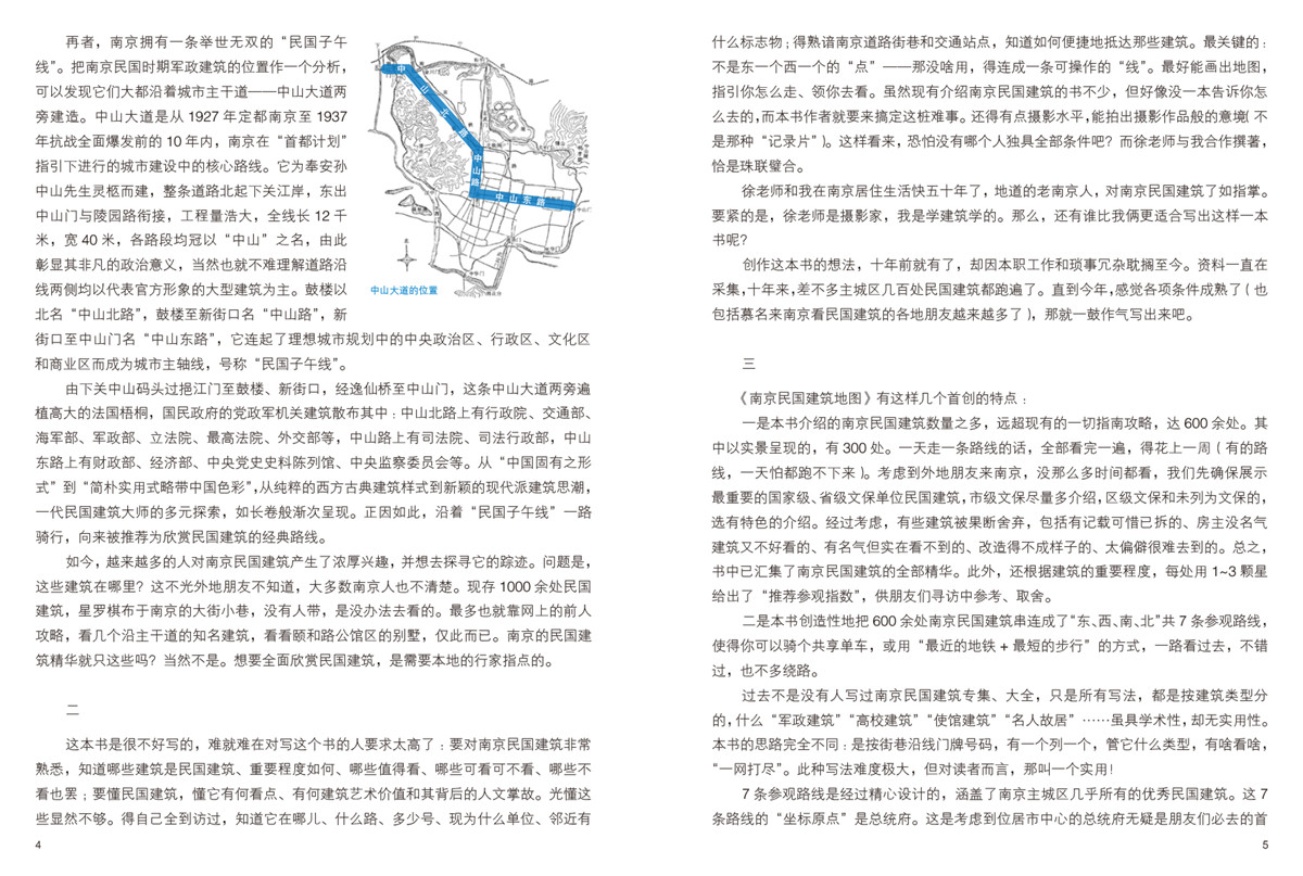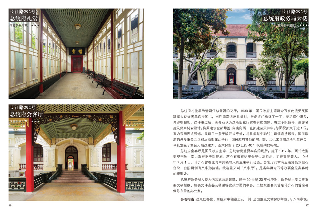 全書介紹的南京優(yōu)秀民國建筑多達630余處,并獨創(chuàng)將分散的民國建筑串連設計成了7條完整的參觀路線,首次具備了實用功能。