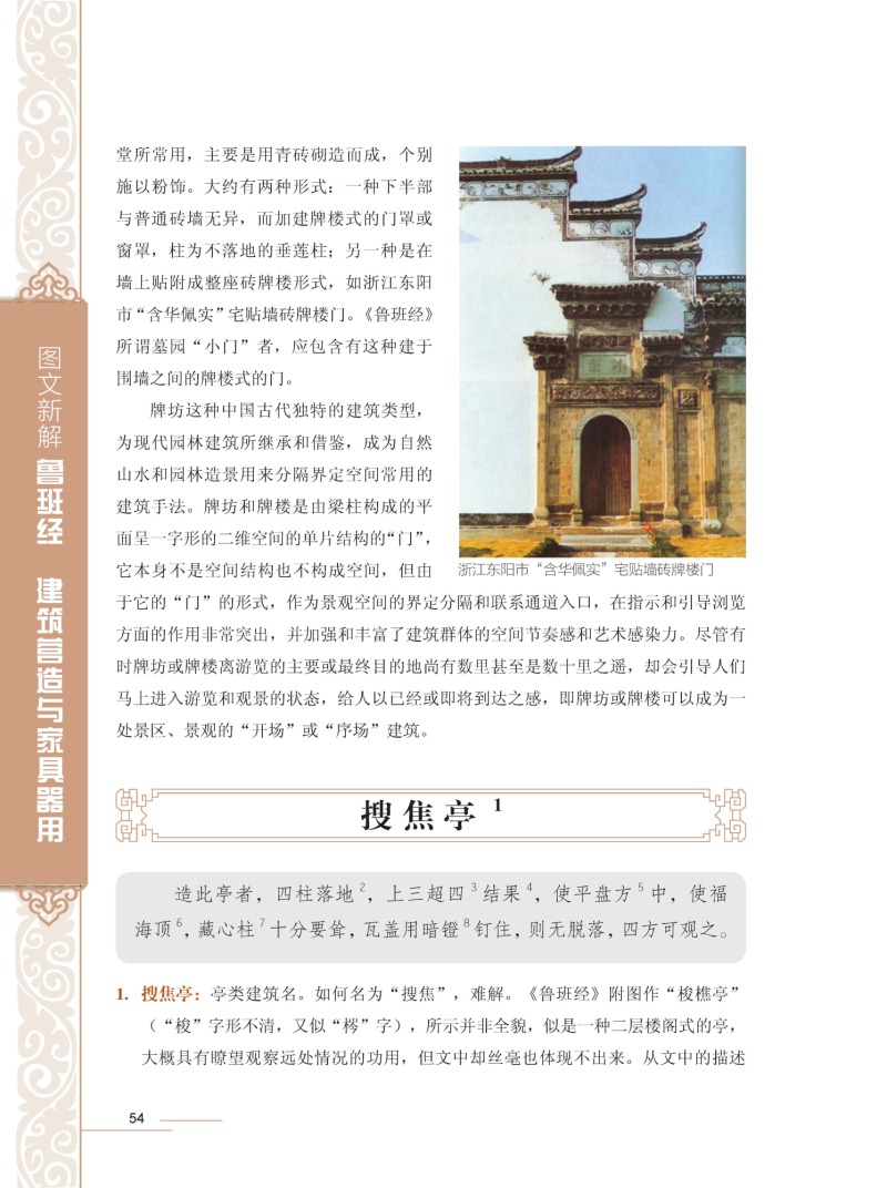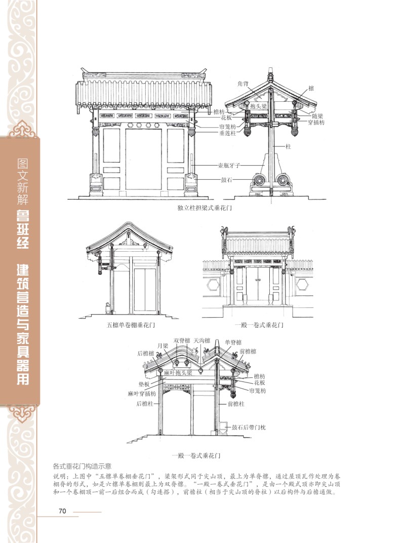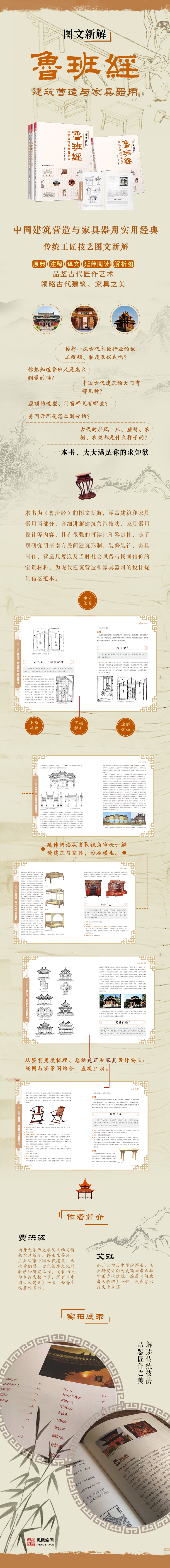 ?原書圖片與現(xiàn)代實景圖片相結(jié)合,線圖標(biāo)示說明,有理有據(jù)地圖解建筑與家具的規(guī)制、做法,為讀者提供一個較為全面的《魯班經(jīng)》讀本。
