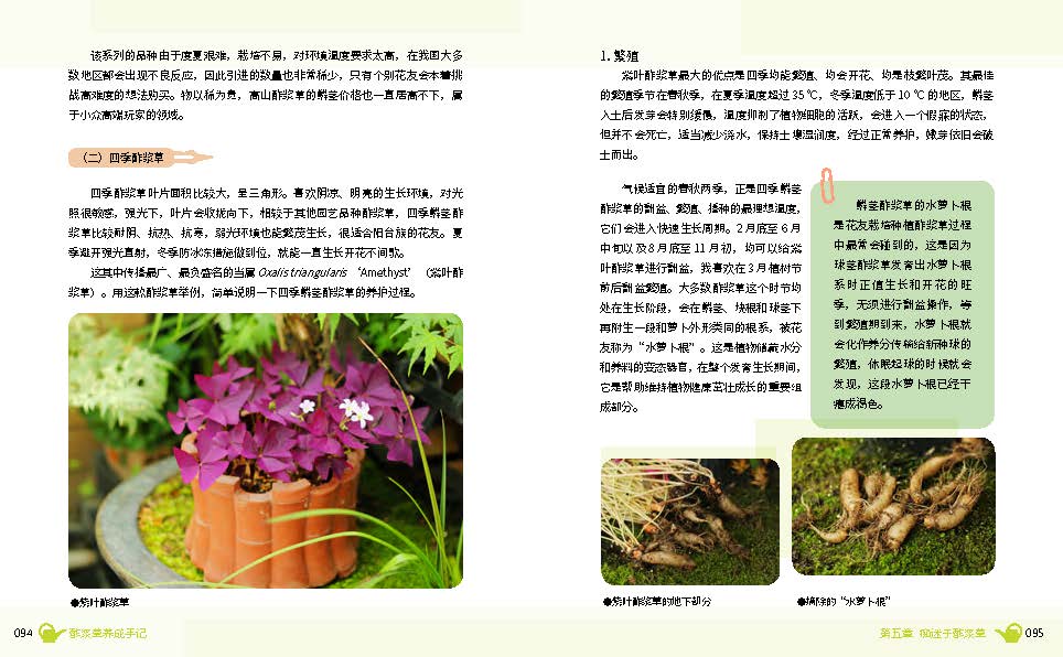 第三章?lián)碛絮{草:著重講述酢漿草的種植及繁殖技術(shù),作者分享了許多自己實(shí)踐多年的十分實(shí)用的種植技術(shù);