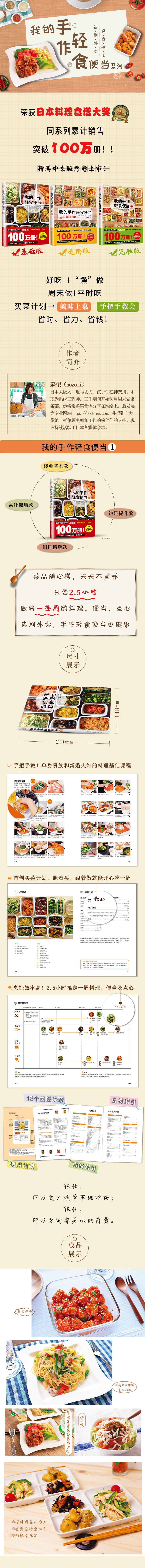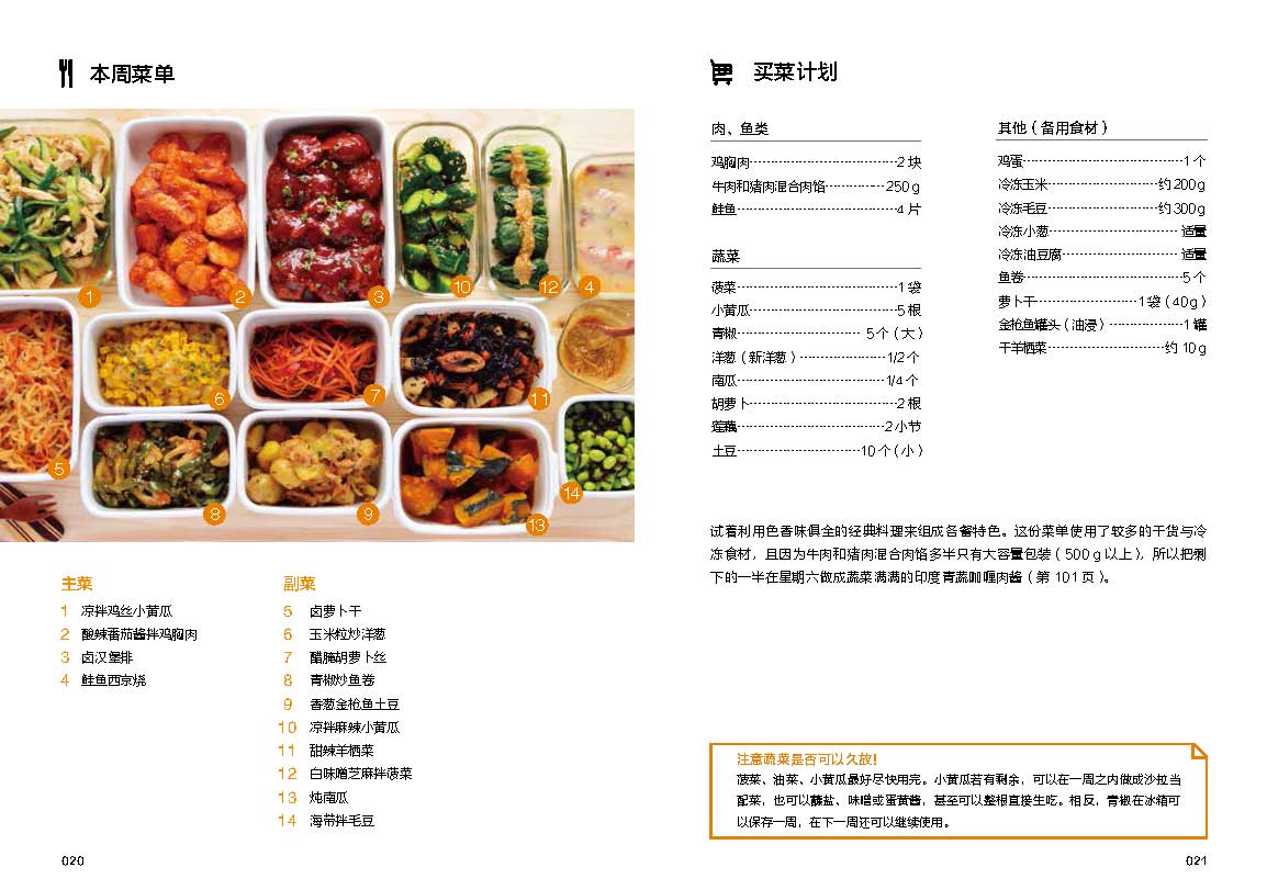 本書首創(chuàng)一周買菜計(jì)劃和食譜,只花2.5小時(shí)即可做好可供兩人食用一周的料理,計(jì)劃性強(qiáng)且十分高效。在公布每周食譜之前,作者先說(shuō)明如何用“常備菜”過(guò)出生活感,怎樣在周末高效地煮完一整周料理,及烹飪所用的容器、器具及常用調(diào)味料。之后手把手教你做79種菜品和6種常用醬料。經(jīng)典基本款、高纖健康款、飽足提升款、假日精選款,便當(dāng)組合豐富,一周30天,天天不重樣。