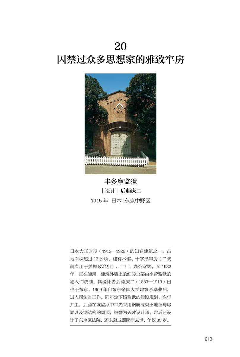 建筑,或規(guī)模宏大或玲瓏精巧、或東方韻味或西洋風(fēng)情、或沉穩(wěn)古典或現(xiàn)代奔放,無論知名與否,其對(duì)美的追求都是共通的;而對(duì)不同空間的詮釋卻是每一座建筑所特有的。只有置身在空間中,親眼去看、傾耳靜聽、用手掌去撫摸接觸,才能了解建筑的價(jià)值。作者走遍10個(gè)國(guó)家,探訪了25座令他一見傾心的建筑。從文丘里設(shè)計(jì)的母親之家、馬蒂斯留下的光之寶,到柯布西耶五次更改設(shè)計(jì)方案的薩伏伊別墅;從騎士時(shí)代的巍巍古堡、維也納迷宮般的下水道,再到囚禁過眾多思想家的豐多摩監(jiān)獄……25個(gè)空間,25張表情,一磚一瓦凝結(jié)建筑之美,一字一句盡顯學(xué)者實(shí)力。