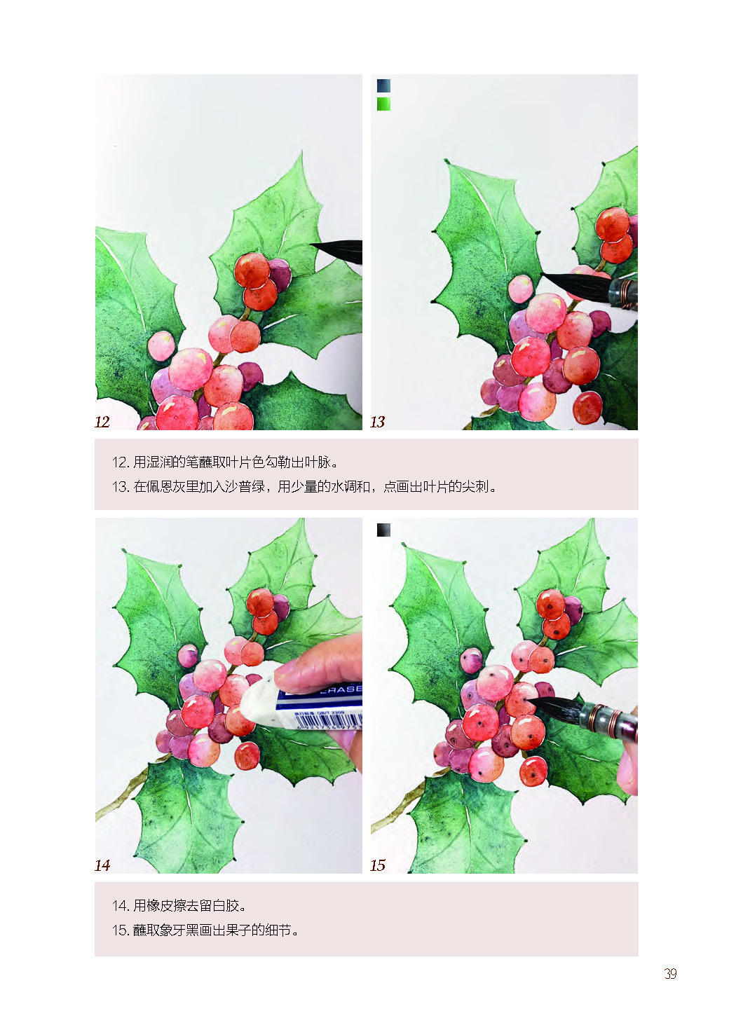 2.在這本書中案例豐富,從花繪,植物和組合小景3個方面,涵蓋了多種植物和花卉。畫風(fēng)清新唯美,內(nèi)容豐富新穎,畫法簡單易操作。