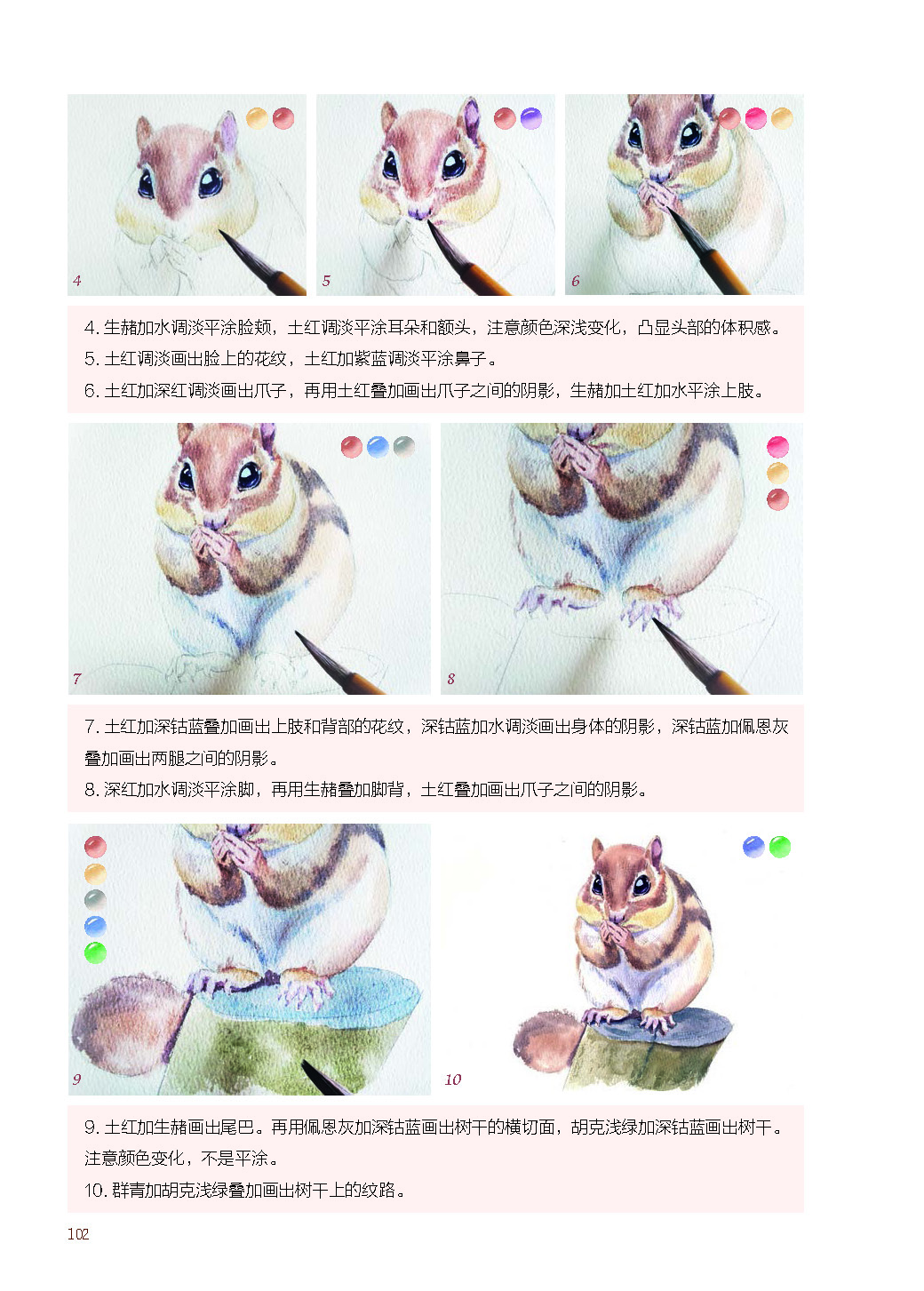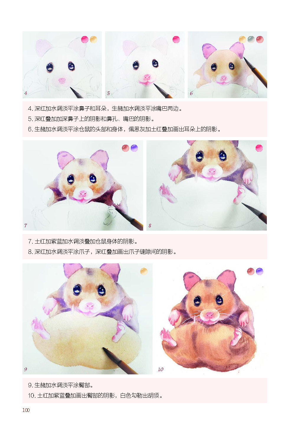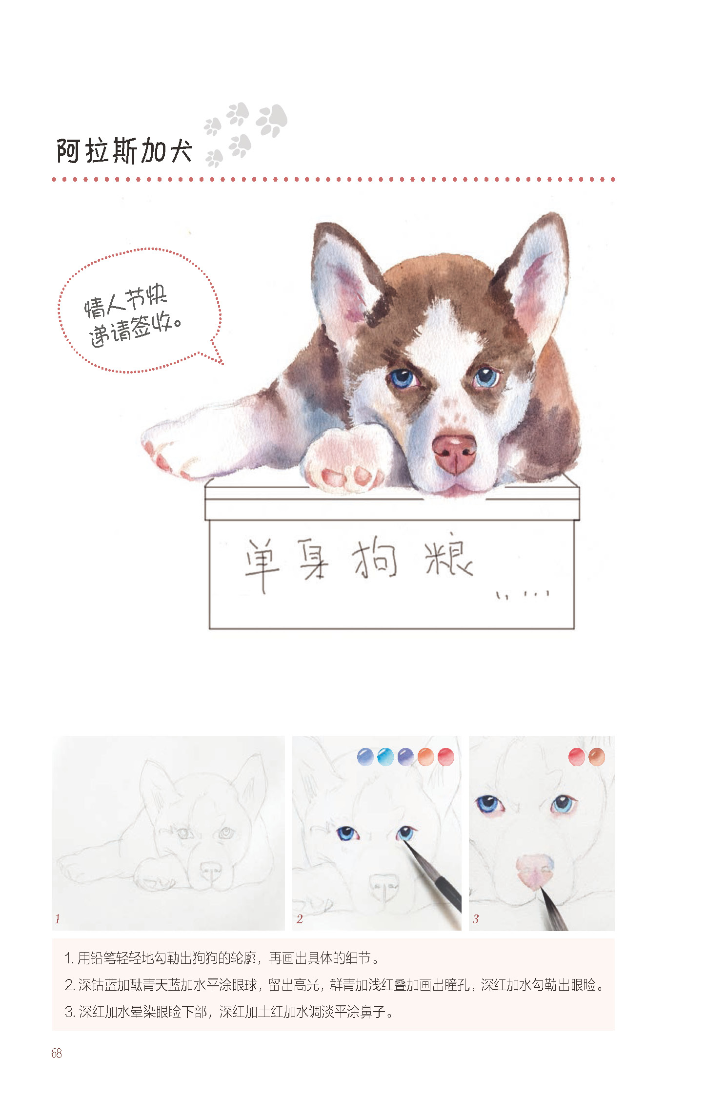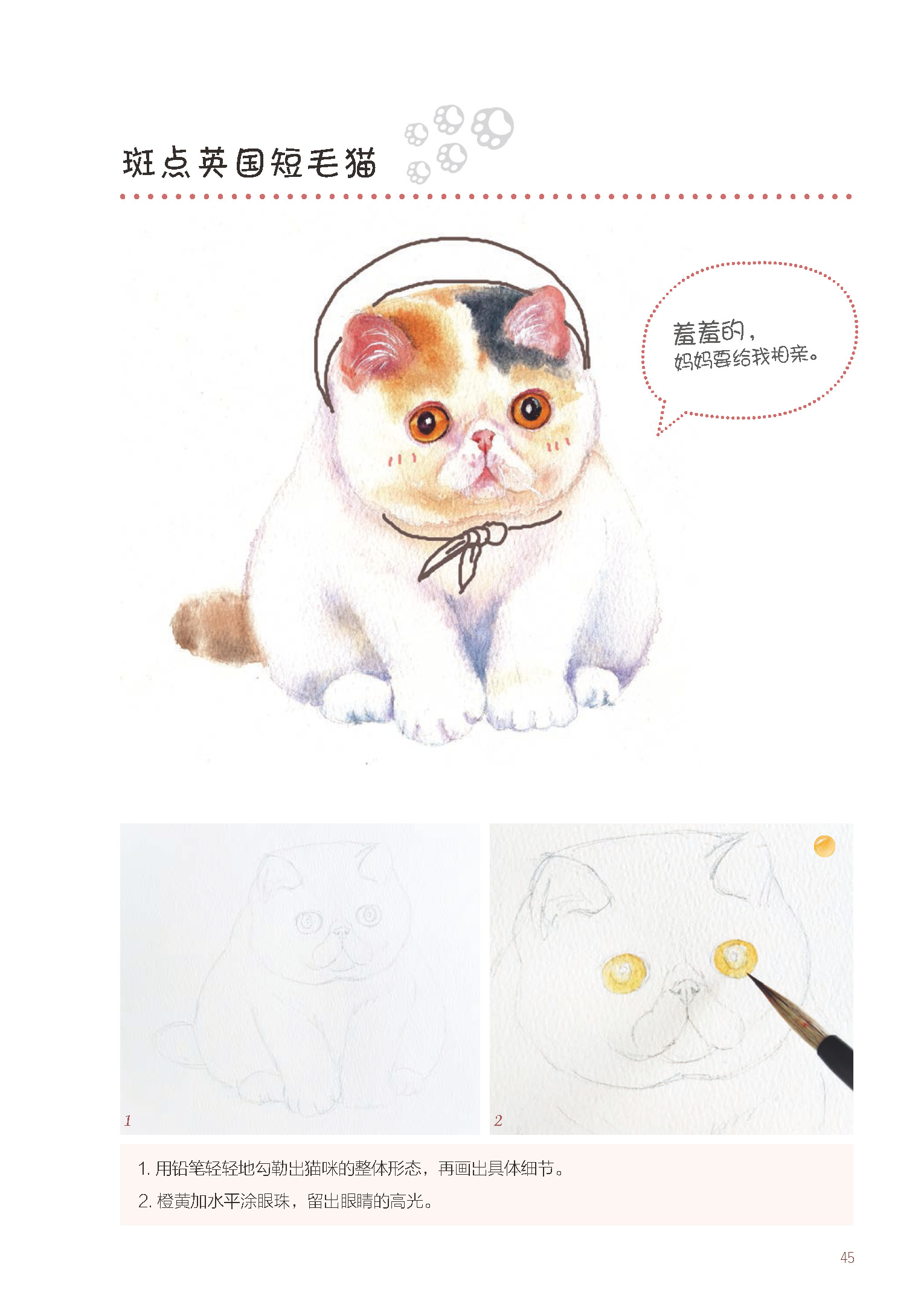 1.以萌寵作為切入點,展現(xiàn)了水彩畫中對萌寵的顏色、布局、質(zhì)感以及工具和基本技法的學(xué)習(xí),圖解直觀,簡單易懂。