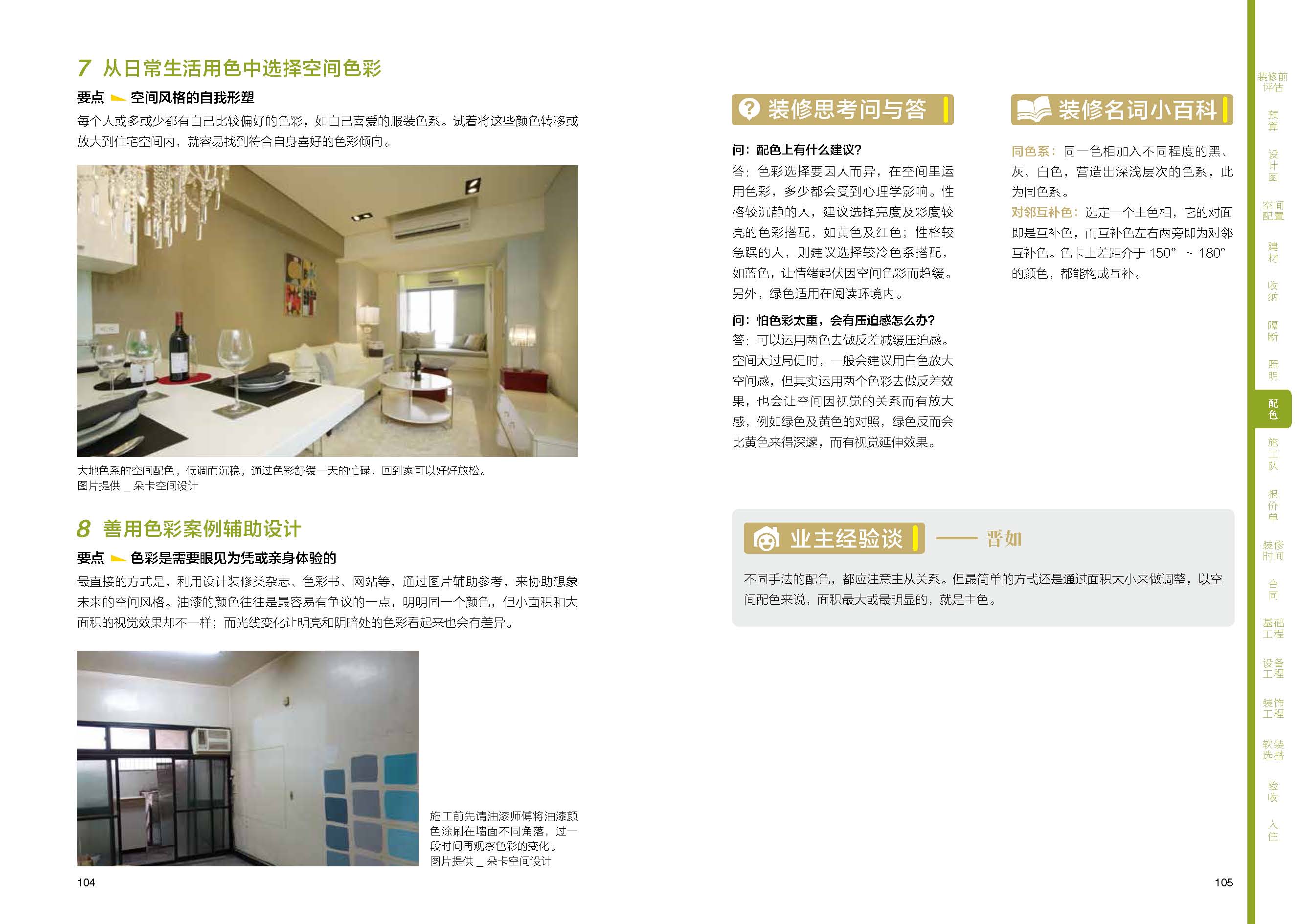 7.業(yè)主經(jīng)驗(yàn)談:邀請 15 位業(yè)主現(xiàn)身說法,針對各個(gè)裝修項(xiàng)目分享經(jīng)驗(yàn)、提出建議。