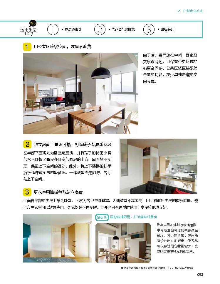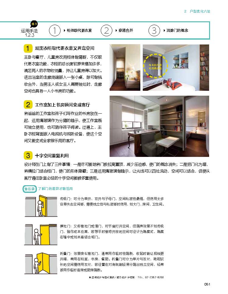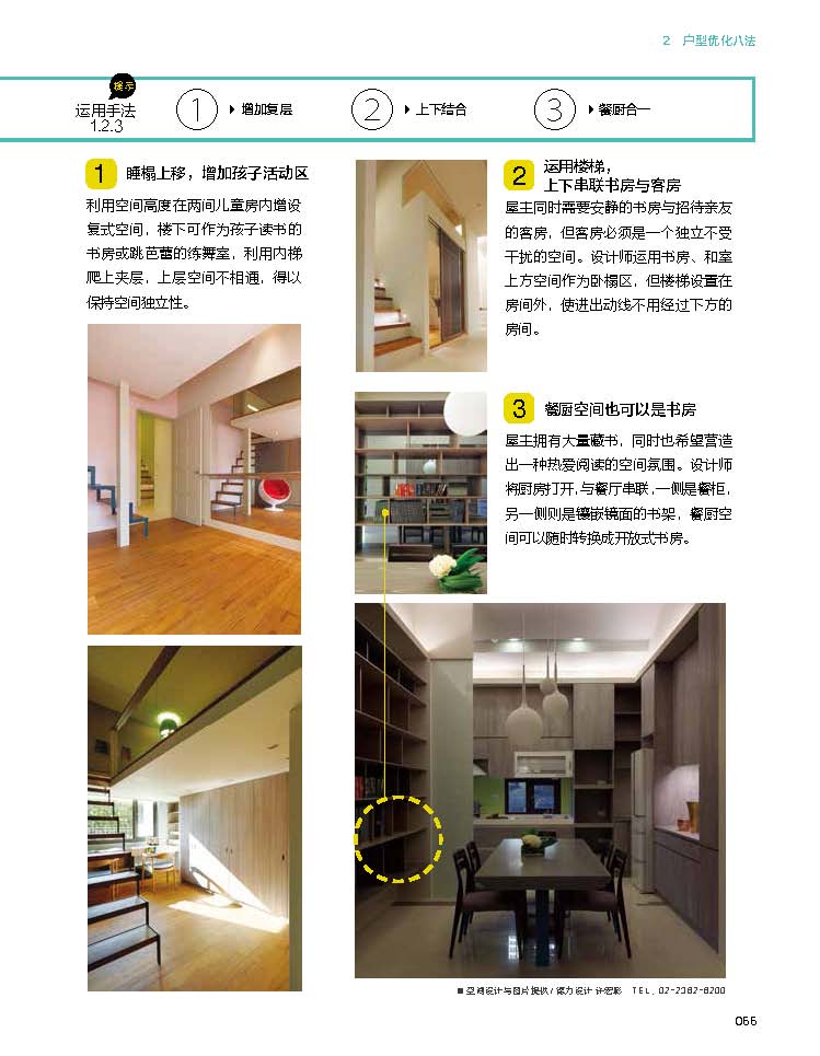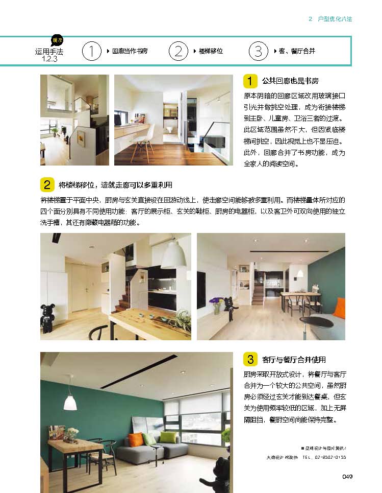 有了初步概念后,再分門別類講解,從空間、家人愉快相處、生活動(dòng)線、特殊功能、通風(fēng)采光、收納計(jì)劃、家庭娛樂休閑及空間心理學(xué),8大不可不知的戶型優(yōu)化手法。