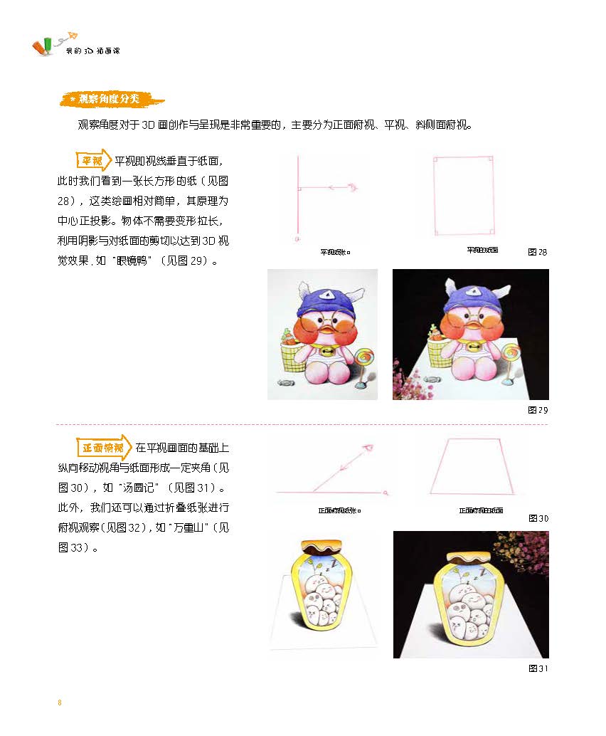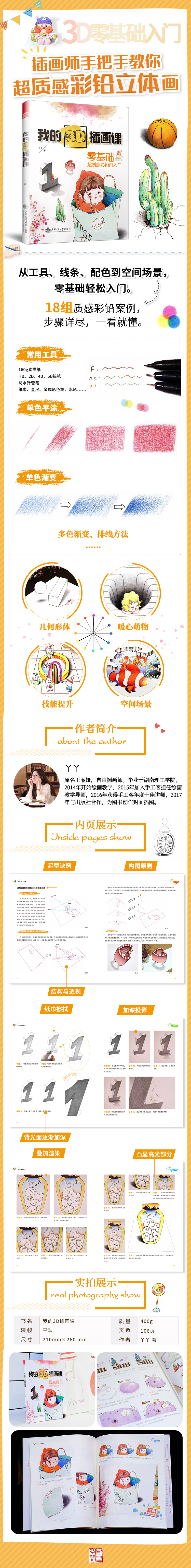 本書對(duì)3D立體彩鉛插畫的教授非常詳盡,從最基礎(chǔ)的工具、線條、配色到幾何形體和空間場(chǎng)景,全部配有詳盡的照片,一看就懂,讓讀者可以輕松地跟著步驟畫出有趣立體的3D插畫。選取的案例都是大眾熟悉有喜愛的萌系圖案,符合定位讀者群體的閱讀偏好。