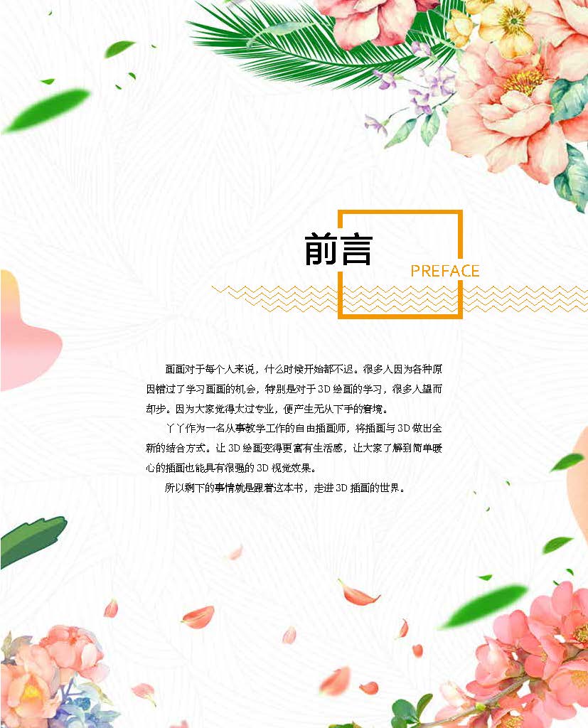本書詳細(xì)介紹了3D立體彩鉛插畫的技法。全書分五個(gè)章節(jié),從基礎(chǔ)篇的3D畫概念,繪畫使用工具及繪畫技法講起,結(jié)合4章18個(gè)案例,即幾何形體篇案例、暖心萌物篇案例、技能提升篇案例和空間場(chǎng)景篇案例由淺入深地詳細(xì)講解了3D插畫技法與步驟,讓讀者可以輕松地跟著步驟畫出有趣立體的3D插畫。